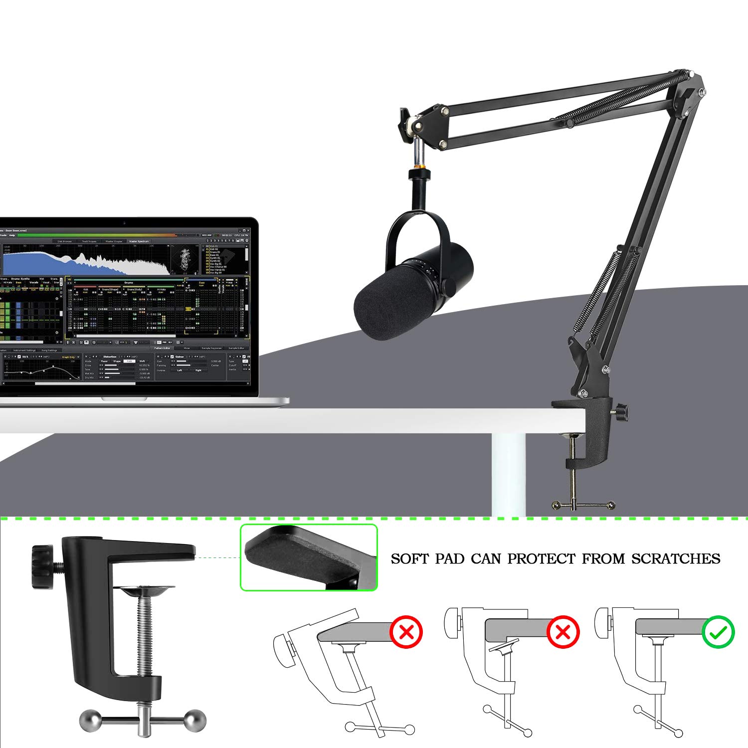✅ Stojak na mikrofon: Stojak na mikrofon – podwójne sprężyny do zawieszenia każdego ramienia wysięgnika chronią mikrofon przed drżeniem i nagłym upadkiem. Jest to wytrzymała konstrukcja stalowa, łatwa do założenia i złożenia.