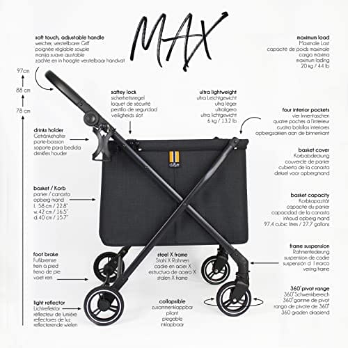 • Wysoki poziom nośności: dzięki składanej walizce na kółkach MAX firmy My Duque można łatwo transportować zakupy i przedmioty do 25 kg z supermarketu lub targu tygodniowego do domu.