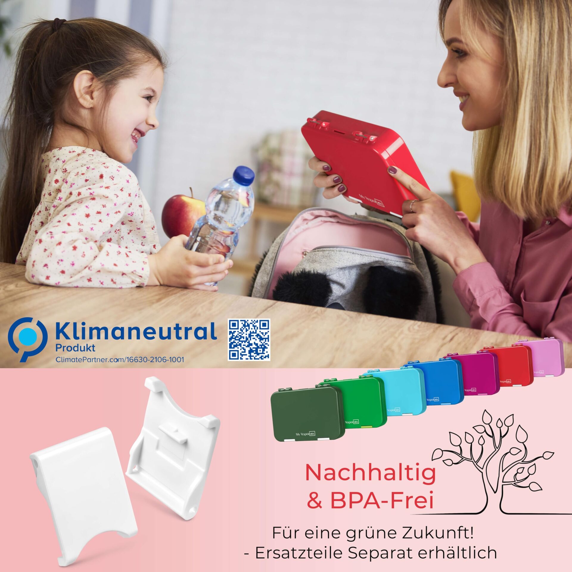 Produkcja przyjazna dla: Produkcja przyjazna dla środowiska – ponieważ zrównoważony rozwój jest dla nas ważny, wszystkie produkty MY Vesperbox są produkowane w sposób neutralny dla klimatu (bez CO2) i odpowiednio kompensowane.