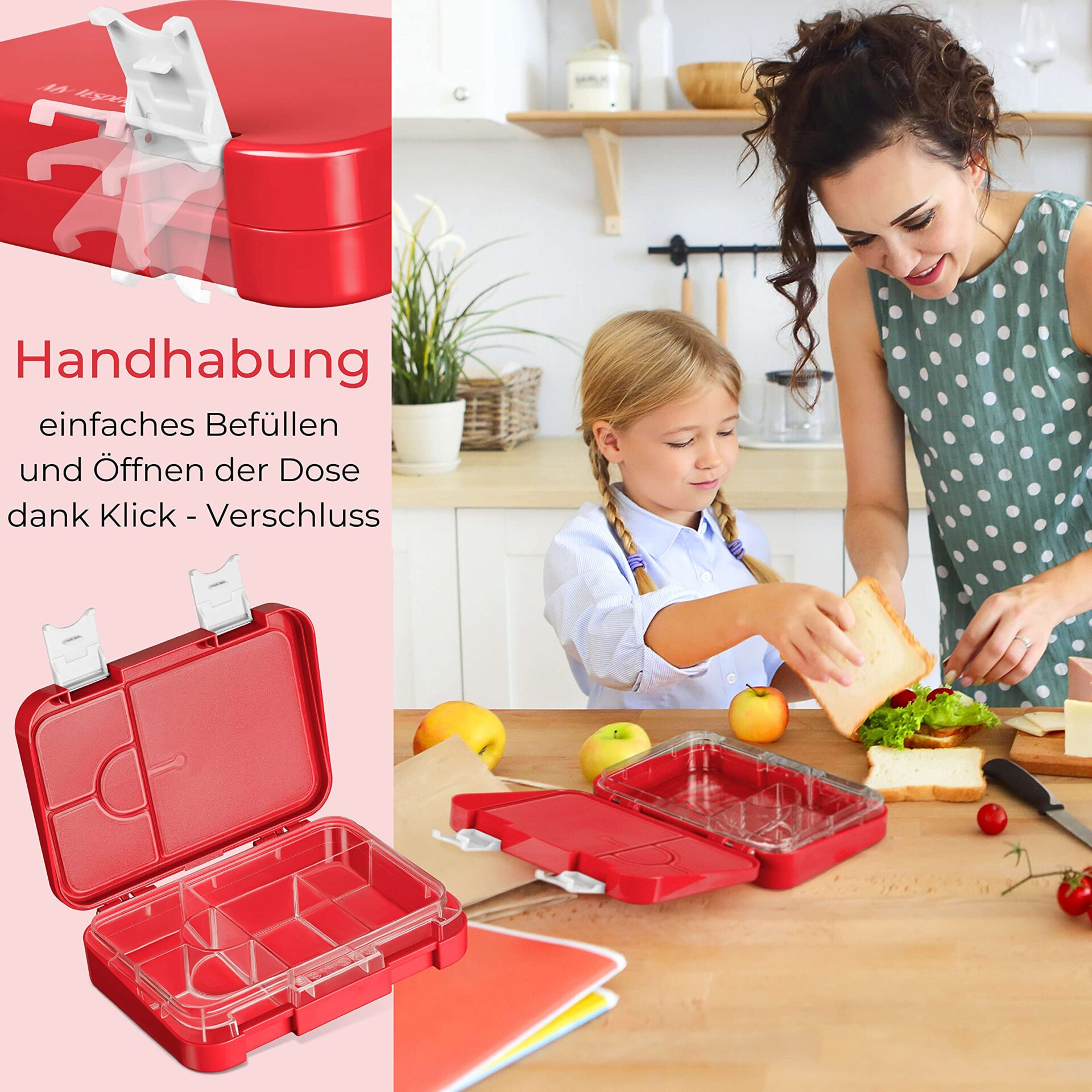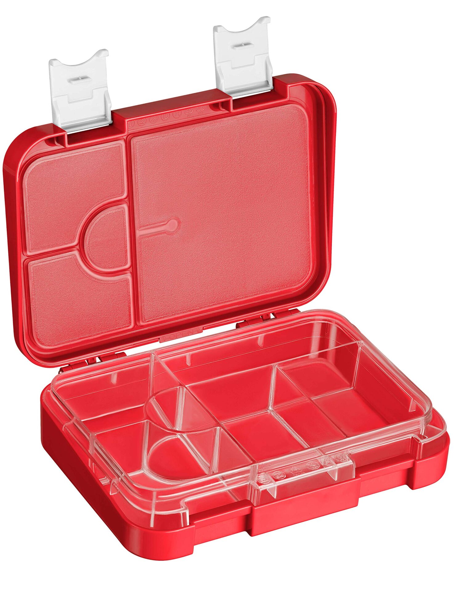 My Vesperbox Len Bento Box pudełko na lunch dla dzieci, 4 + 2 przegródki, bardzo wytrzymałe pudełko na kanapki, idealne do przedszkola i szkoły (czerwony, biały)