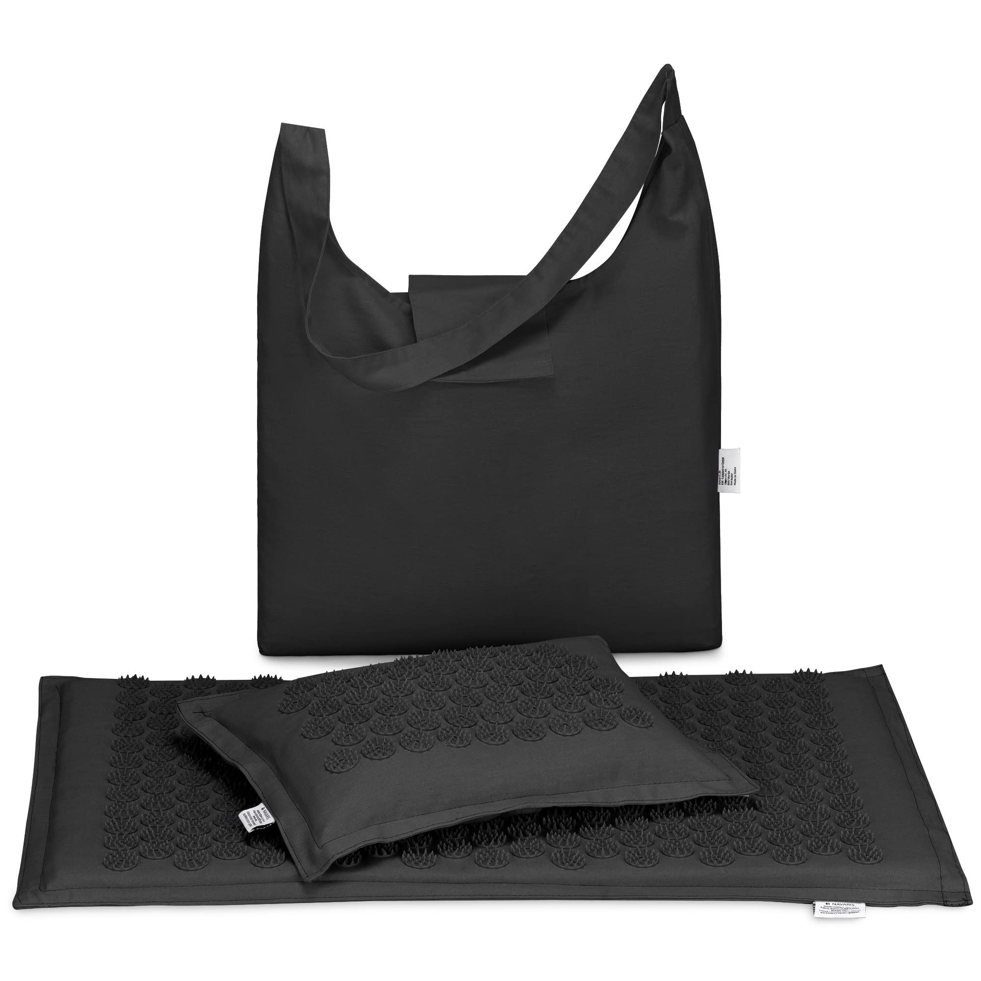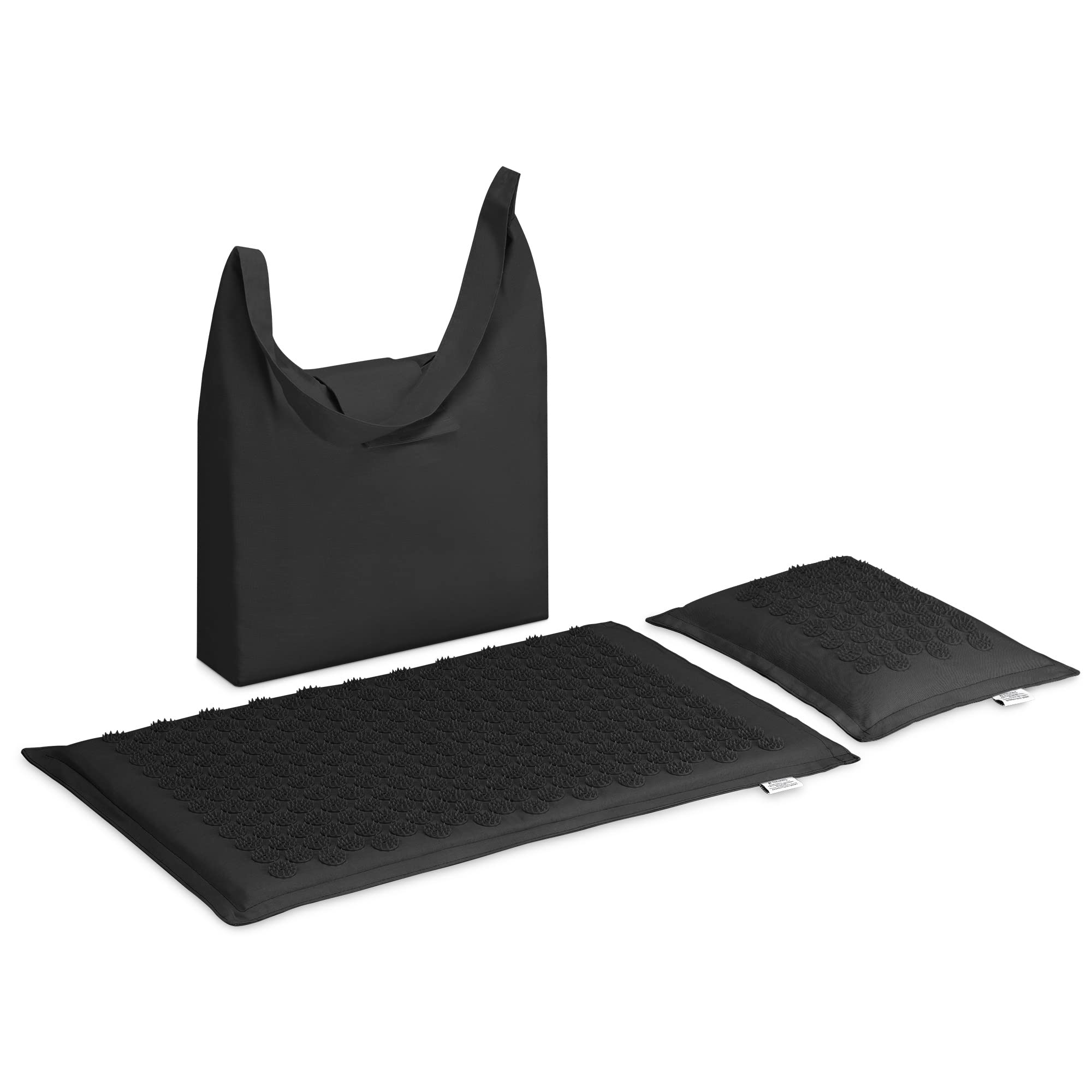 Navaris Zestaw do masażu 2 w 1 – mata do akupresury i poduszka z torbą – relaksujący zestaw do akupresury dla stresu i bólu – przyjazny dla środowiska – Akupresura