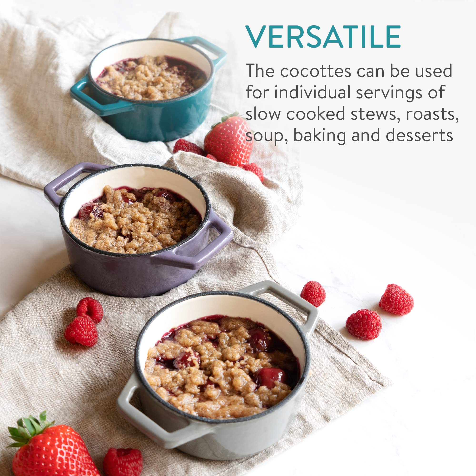 ✅ Można używać w: Można używać w piekarniku: stalowy guzik na pokrywie sprawia, że te mini naczynia są odporne na temperaturę do 260°C. Idealny do potraw, które wymagają wyższej temperatury gotowania i idealne dla wszystkich, którzy chętnie przygotowują swoje potrawy w piekarniku.