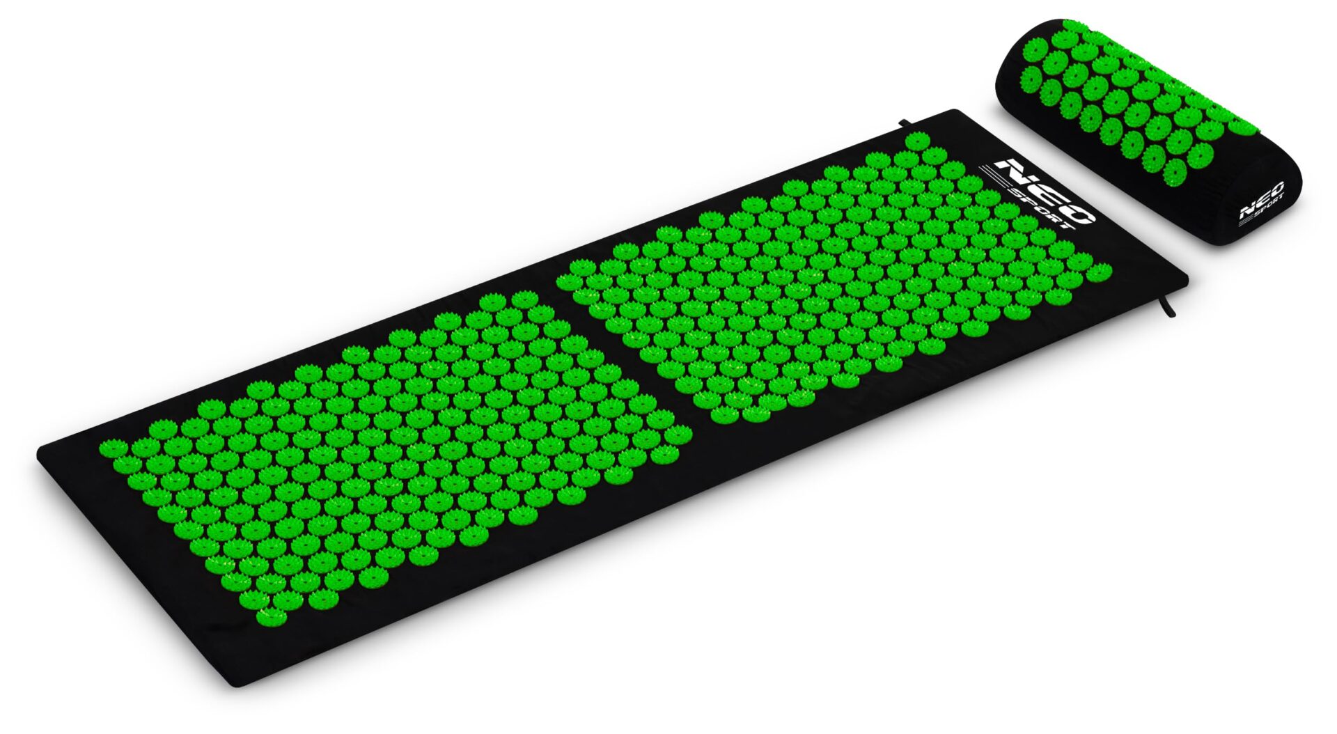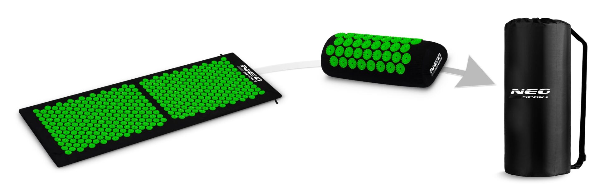 Nazwa produktu: Neo-Sport – Mata do akupresury z poduszką i torbą do przenoszenia – zestaw – 125 x 46 cm – zdejmowana poszewka z bawełny – mata kolczasta do masażu całego ciała akupunktura – czarna i zielona