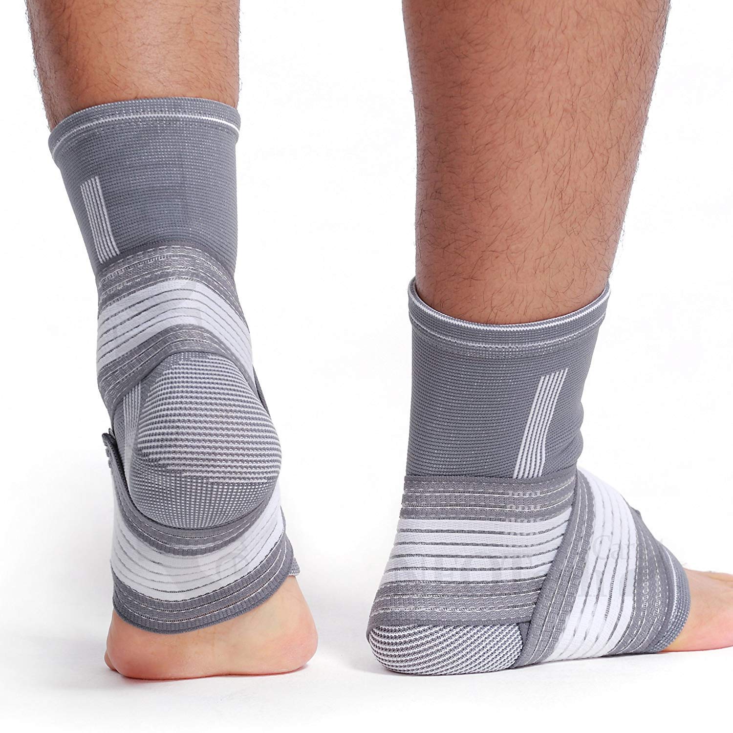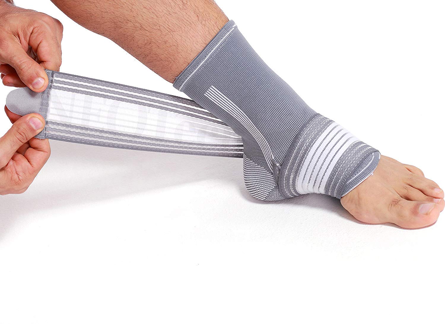 Neotech Care – Bandaż na staw skokowy – elastyczna i oddychająca tkanina – regulowana taśma kompresyjna – dla mężczyzn, kobiet i młodzieży – na lewą lub prawą stopę (Szary, 1 jednostka, M)