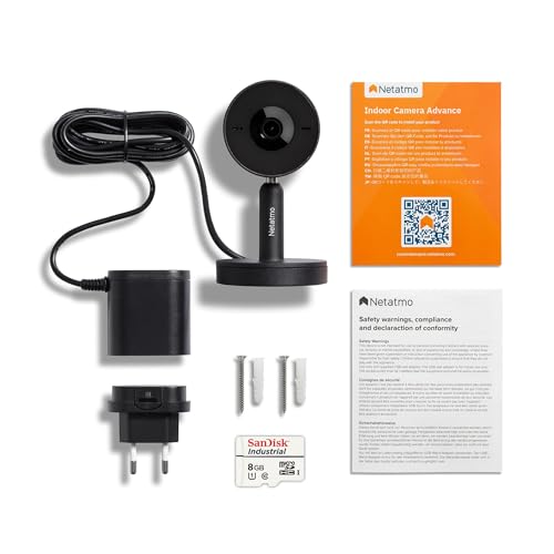 Netatmo Inteligentna Kamera Advance Wewnętrzna z AI – Rozpoznawanie Twarzy, Dwukierunkowy Dźwięk, Kąt Widzenia 130°, 2K HDR, 30 kl./s, Zoom X16, 2x SD – Czarny