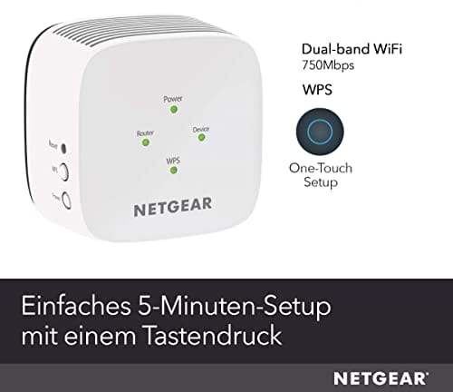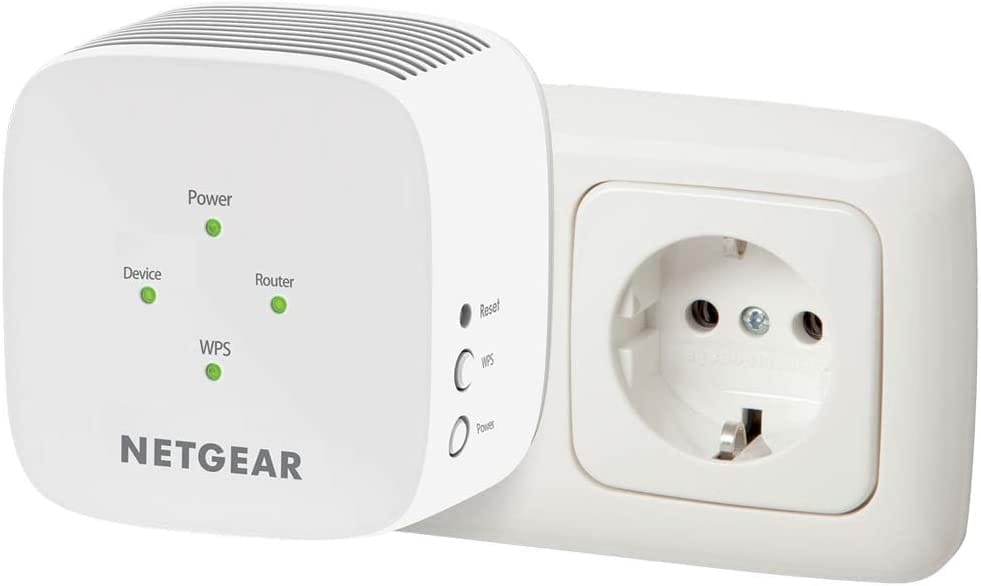 NETGEAR Wzmacniacz WLAN EX3110 Wzmacniacz WLAN AC750 (dwuzakresowe WiFi 2,4/5 GHz, zasięg od 2 do 3 pomieszczeń i 20 urządzeń, prędkość do 750 Mb/s), biały