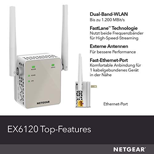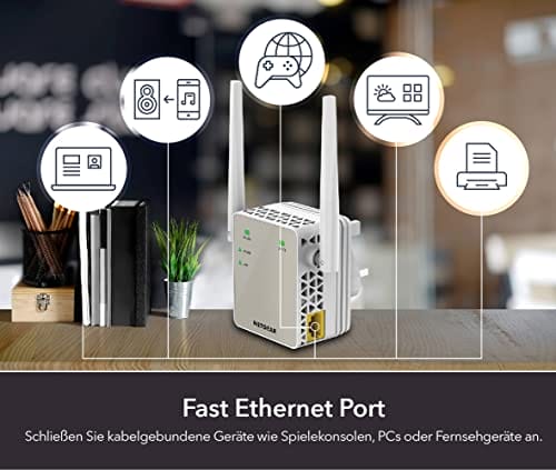 Wzmacniacz sygnału sieci Wi-Fi NETGEAR EX6120 to urządzenie, które umożliwia zwiększenie zasięgu sieci Wi-Fi do 139 m². Dzięki temu można podłączyć ponad 25 urządzeń, takich jak laptopy, smartfony, głośniki, kamery IP, tablety, urządzenia IoT i wiele innych.