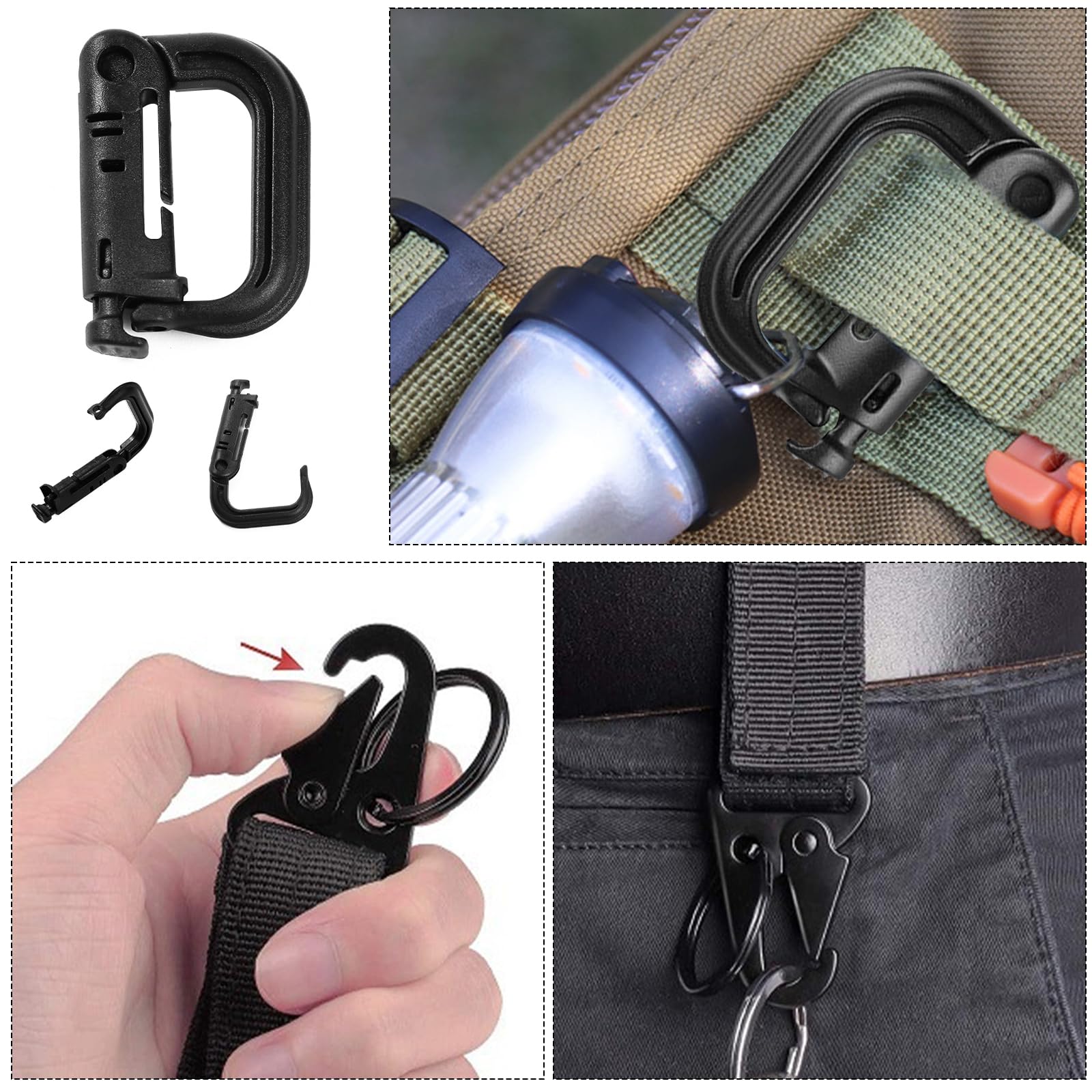 NEUSID 48 sztuk akcesoriów Molle, wielofunkcyjne okucia taktyczne, klipsy z karabińczykami, okucia systemu Molle, pętla na pasek, akcesoria do plecaków taktycznych, przeznaczone na szkolenie