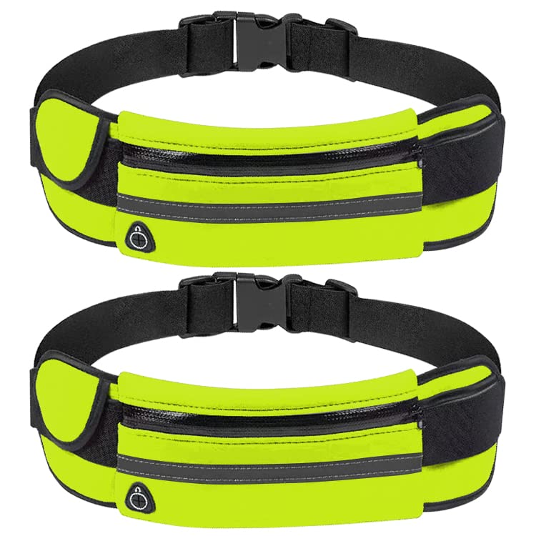 Newaner 2-pak wodoszczelna torba na biodra dla kobiet i mężczyzn z regulowanym gumowym ściągaczem z przyłączem na słuchawki nadaje się do fitnessu joggingu podróży jazdy na rowerze zielony zielony czas wolny