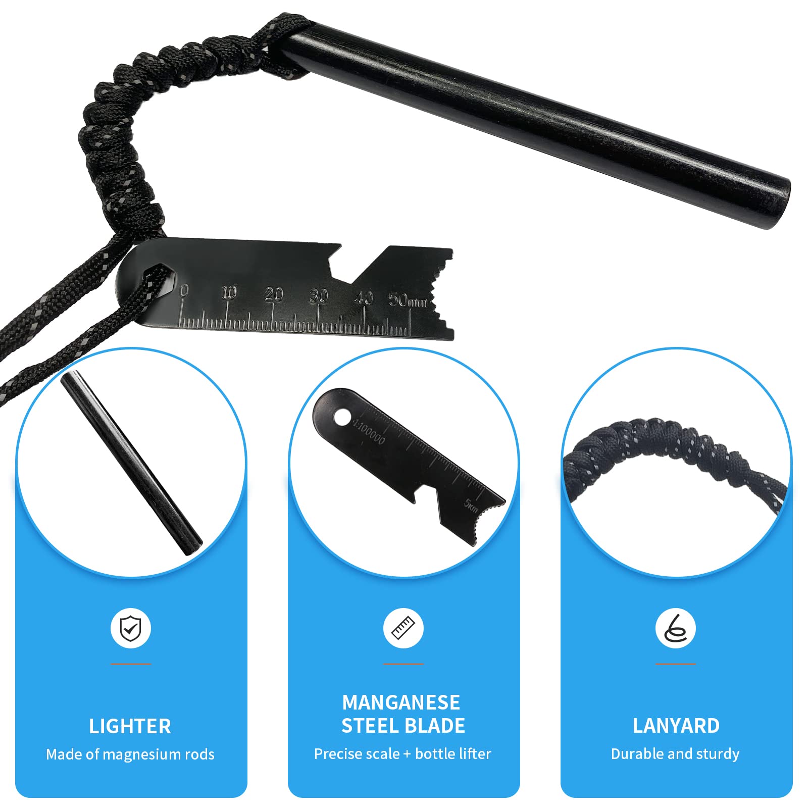 ✅ Zestaw survivalowy Flint: Zestaw survivalowy Flint – nasz krzesiwo zawiera zewnętrzny rozrusznik + 1 ogniotrwały skrobak stalowy + stabilną linkę, stalowy skrobak jest wyposażony w linijkę i otwieracz do butelek, a intymne otoczenie sprawia, że Twoje aktywności na świeżym powietrzu są wygodniejsze i wygodniejsze.