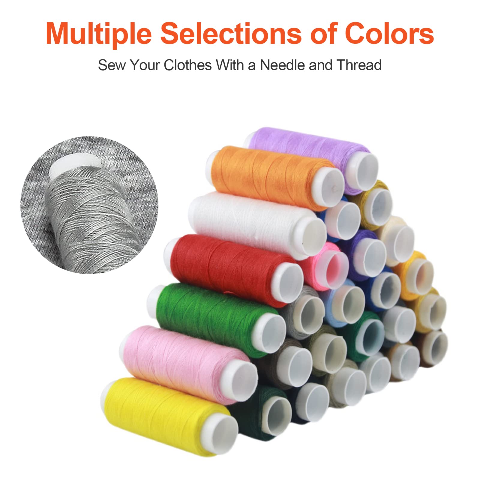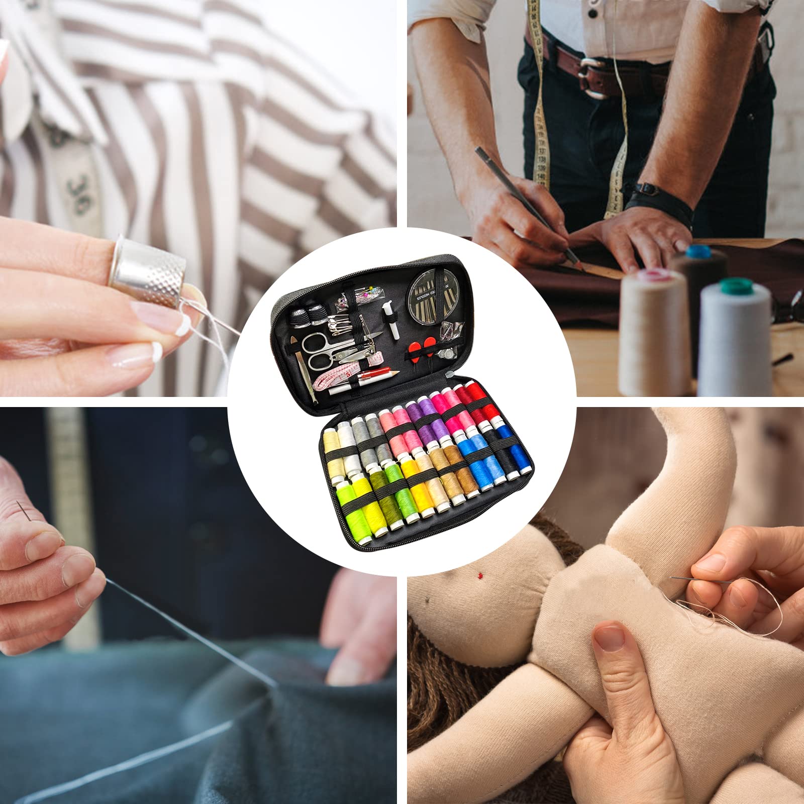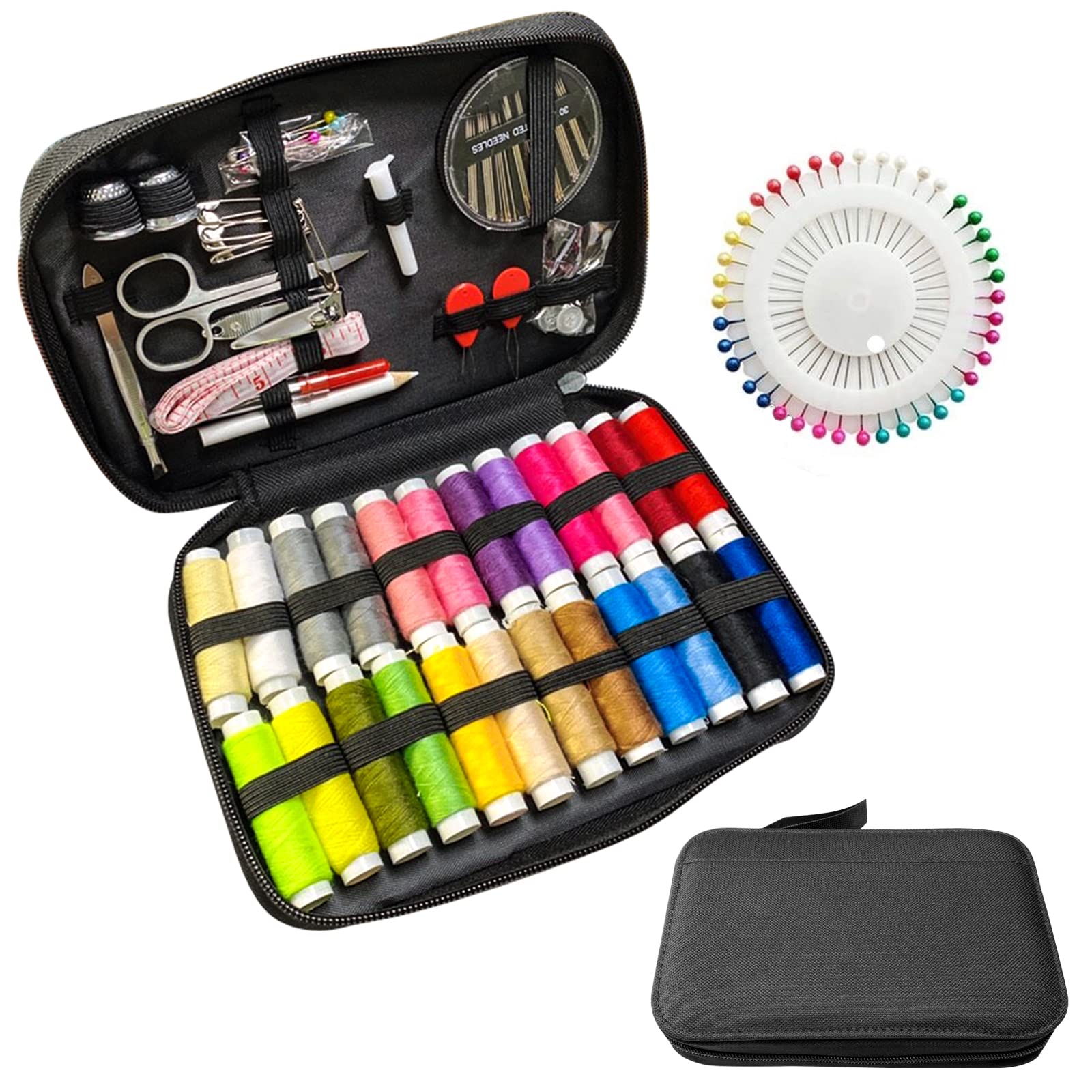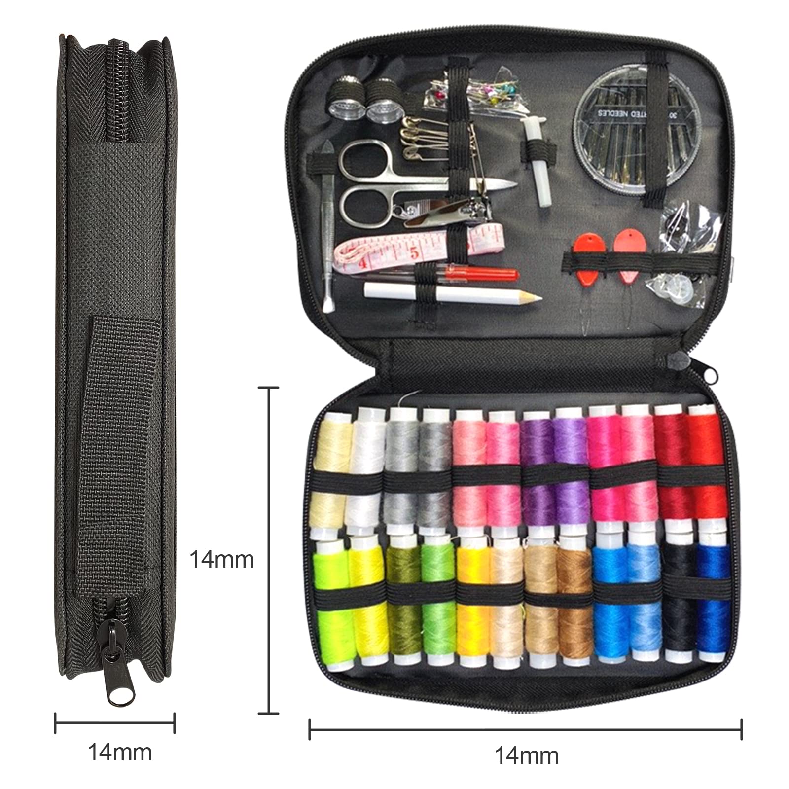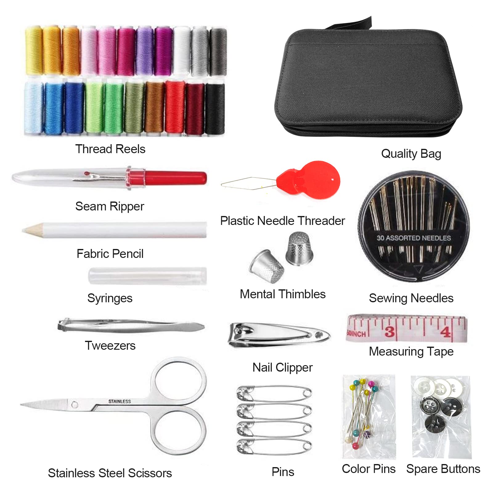 • 【Kompletny zestaw do szycia】 Przenośny zestaw do szycia zawiera 129 akcesoriów do szycia plus torebkę, 24 różne kolory przędzy, złotą tarczę igłą (30), nożyczki, miarkę, cylinder igły, separator do szwów, obcinacz do paznokci, klipsy Mei-Clips, szczotki (jedna z każdy). Każda z nich znajduje się 2 końcówki igieł i 2 nawlekacz igły. 3 białe guziki, 3 czarne guziki i 3 ciemne guziki. 5 igieł, 10 igieł do pereł i 40 igieł.