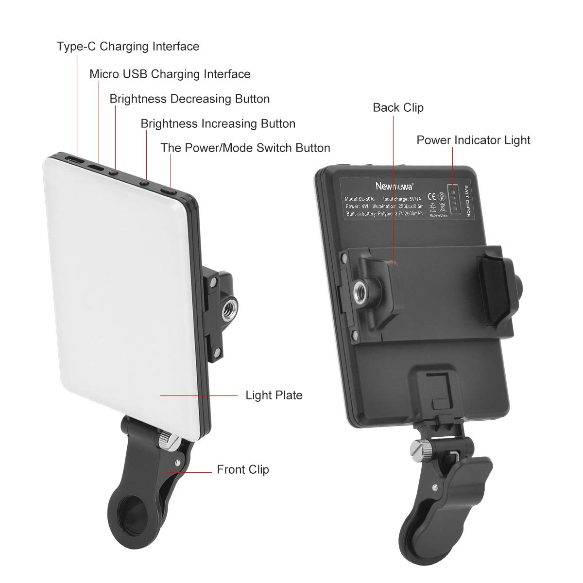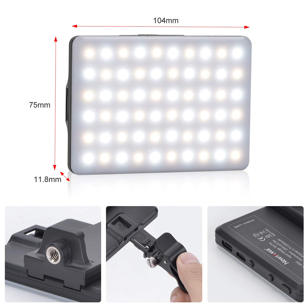 ✅ Newmowa LED Video: Newmowa LED Video Light przyjmuje najnowszy projekt. Ultracienki i lekki panel LED, rozmiar: 104*11,8*75mm, panel waży tylko 140 gramów, mały korpus, łatwy do przeprowadzenia w dowolnym miejscu i wygodny do użytku wewnątrz lub na zewnątrz