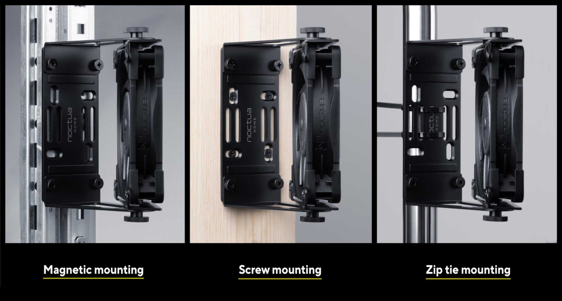 Wytrzymała, solidna, stalowa: Wytrzymała, solidna, stalowa konstrukcja o czarnym, matowym wykończeniu, godna zaufania jakość Noctua do szczególnie wymagających zastosowań!