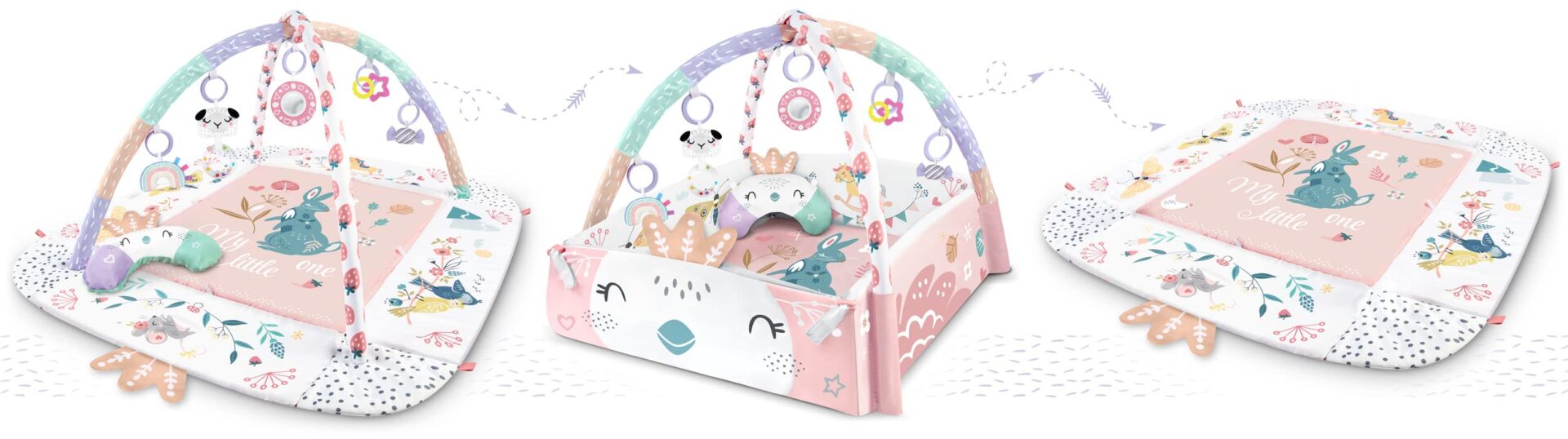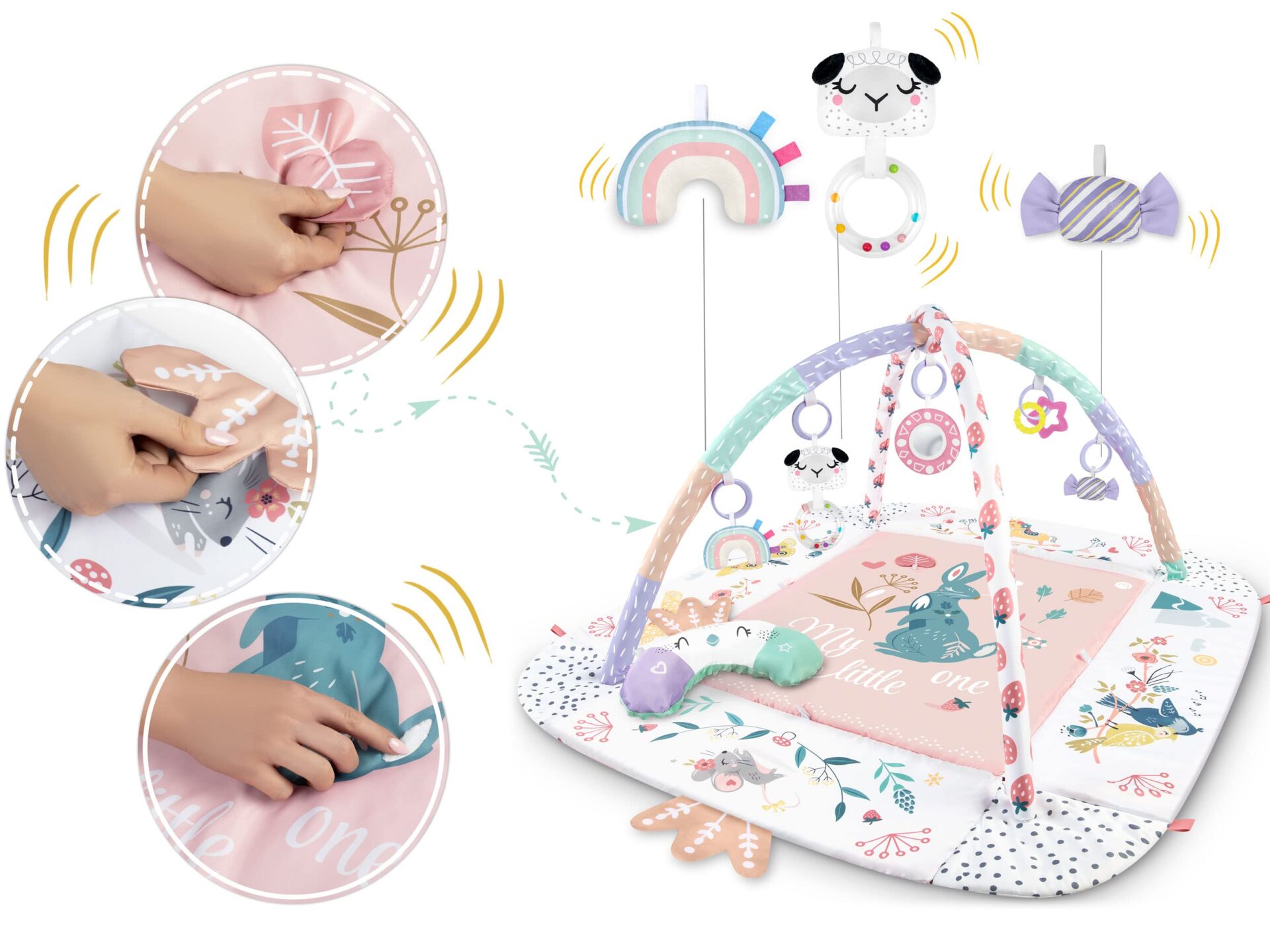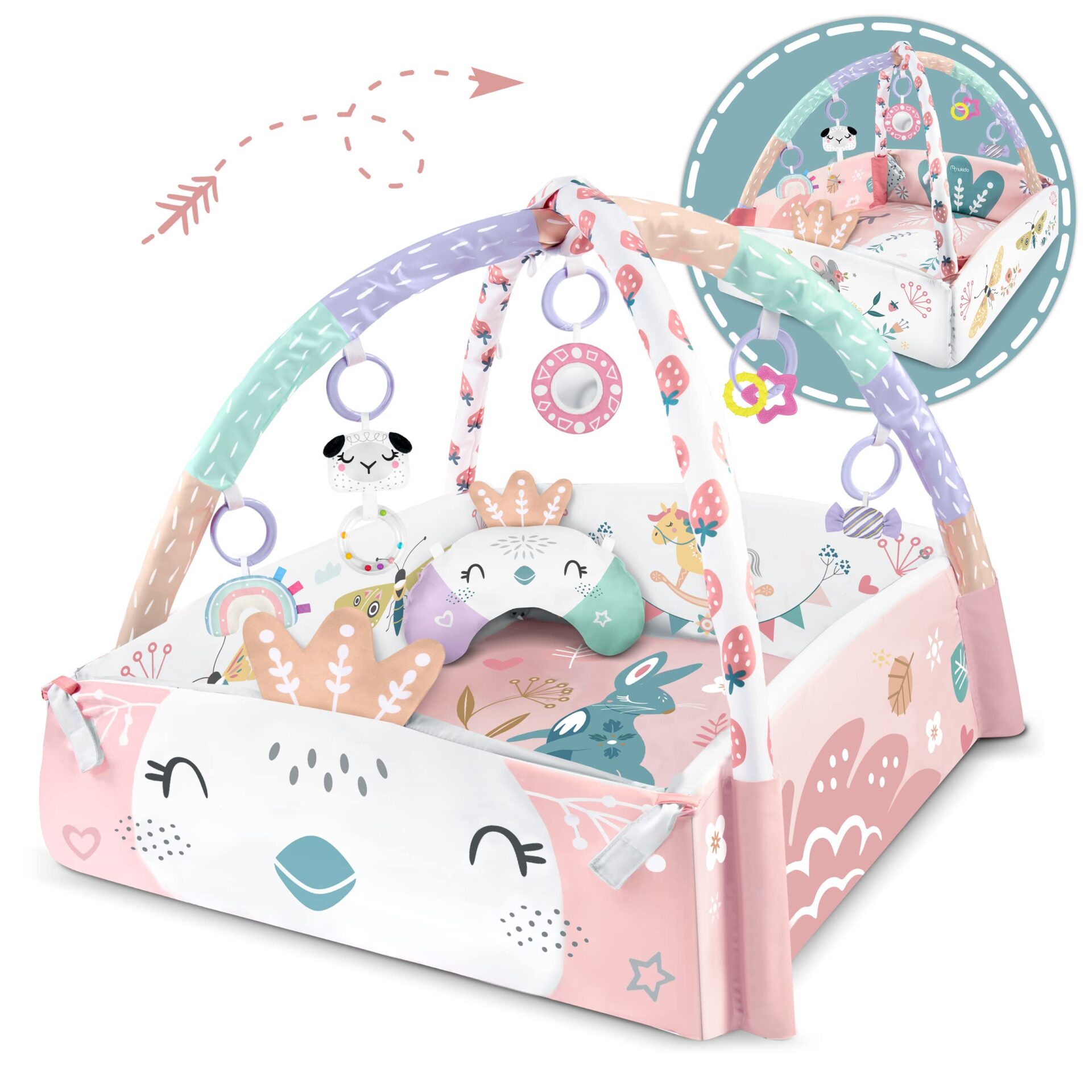 Mata edukacyjna NUKIDO jest wyposażona w siedem wielofunkcyjnych zabawek, które pobudzają zmysły dziecka i zachęcają do eksploracji. Każda zabawka ma unikalne cechy, które pomagą dziecku rozwijać różne umiejętności, takie jak koordynację ręka-oko, zdolności motoryczne, a nawet poczucie rytmu.