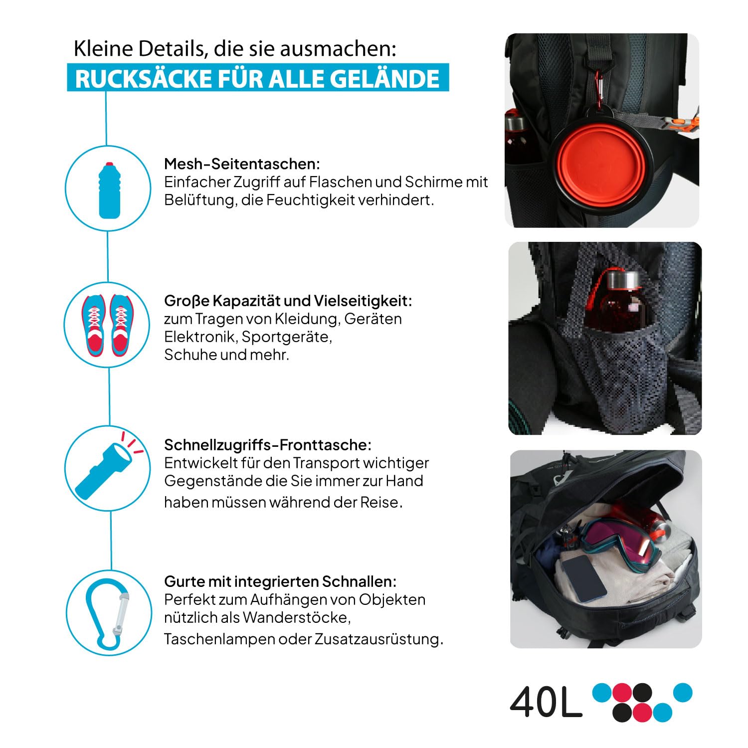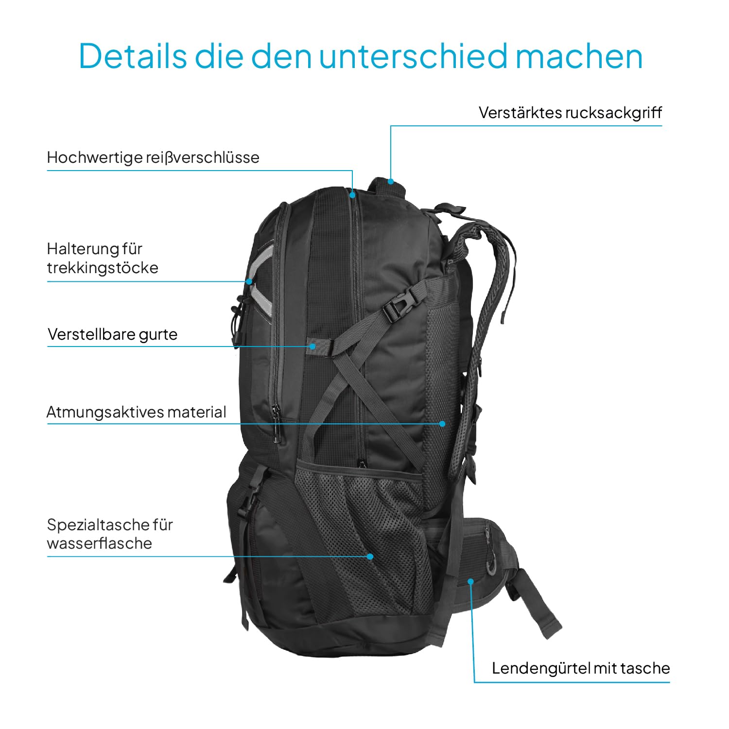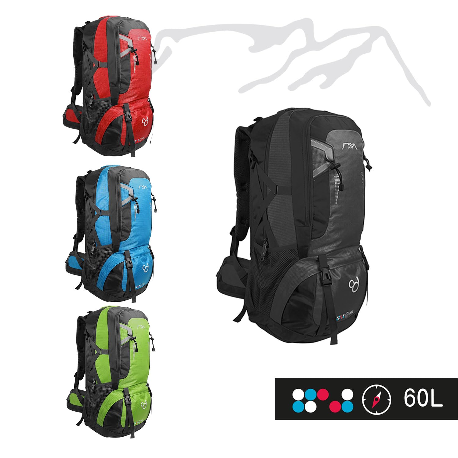 ✅ DUŻA POJEMNOŚĆ: 60-litrowy: DUŻA POJEMNOŚĆ: 60-litrowy plecak przeznaczony do przenoszenia wszystkiego, czego potrzebujesz podczas pieszych wędrówek, trekkingu lub długich wycieczek.