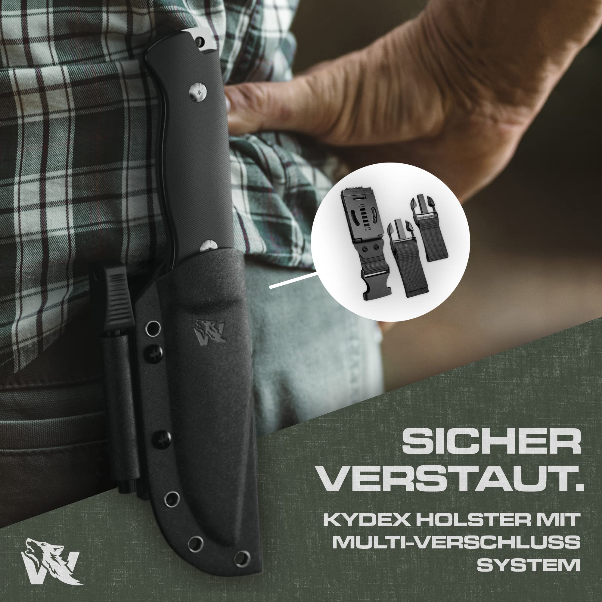 ✅ KYDEX HOLSTER Z: KYDEX HOLSTER Z klipsem – nóż outdoorowy jest dostarczany w kaburze z najwyższej jakości Kydex i może być w niej zablokowany. Ponadto kabura jest przykręcona za pomocą blokowanego klipsa do paska, dzięki czemu nóż można zawsze mieć pod ręką w zasięgu ręki