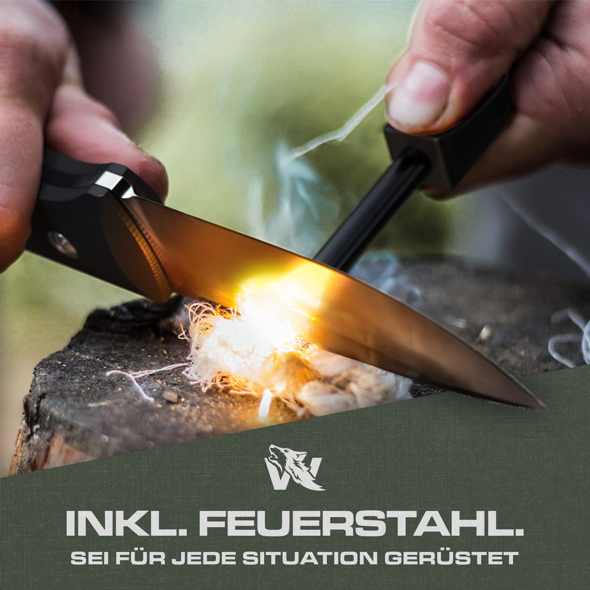Odewolf LUPUS nóż outdoorowy, stałe ostrze w klasycznym stylu, survivalowy, z pochwą i krzesiwem – idealny bushcraft