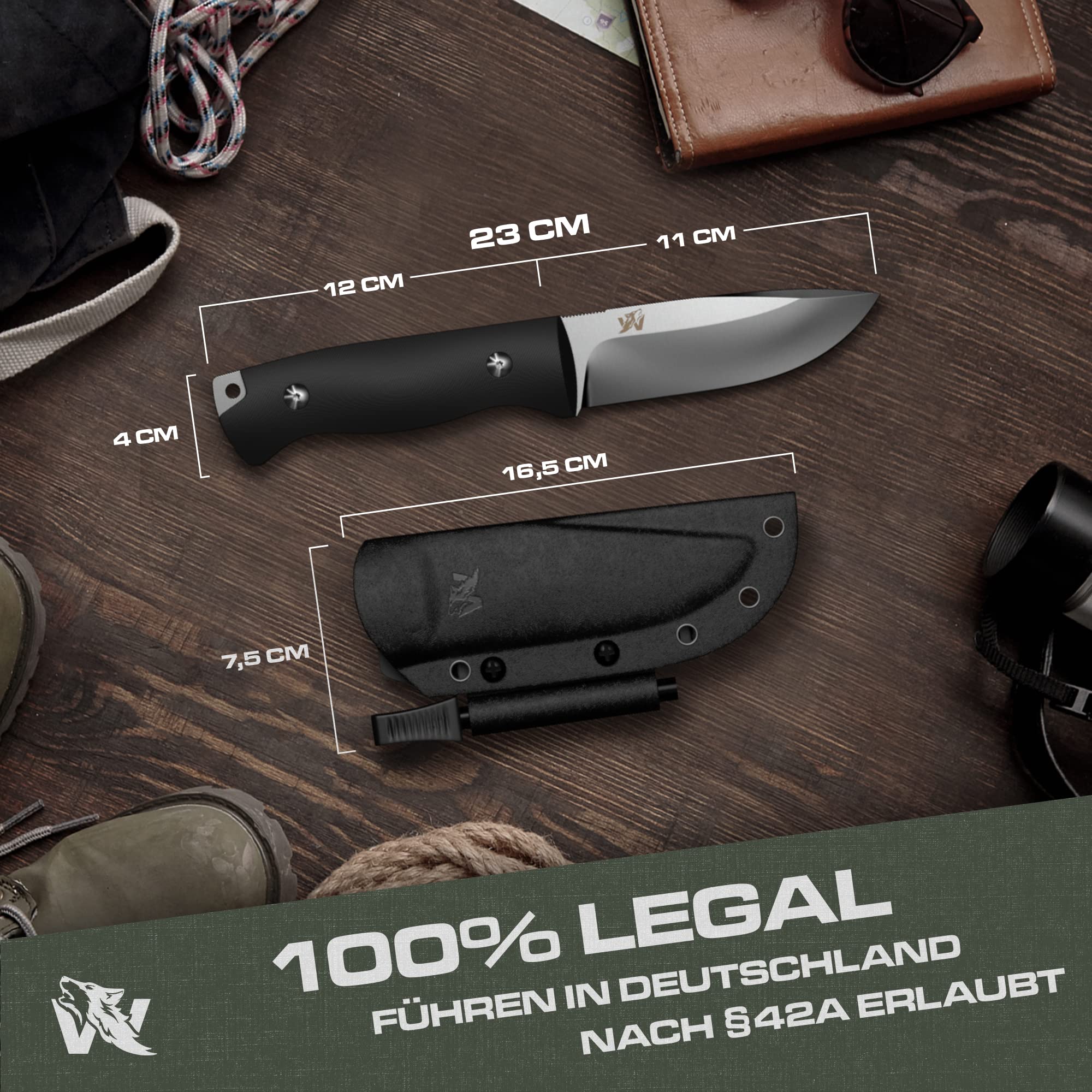 ✅ Legalny transport –: Legalny transport – nóż Lupus o długości ostrza 11 cm jest legalny, aby go nosić ze sobą.