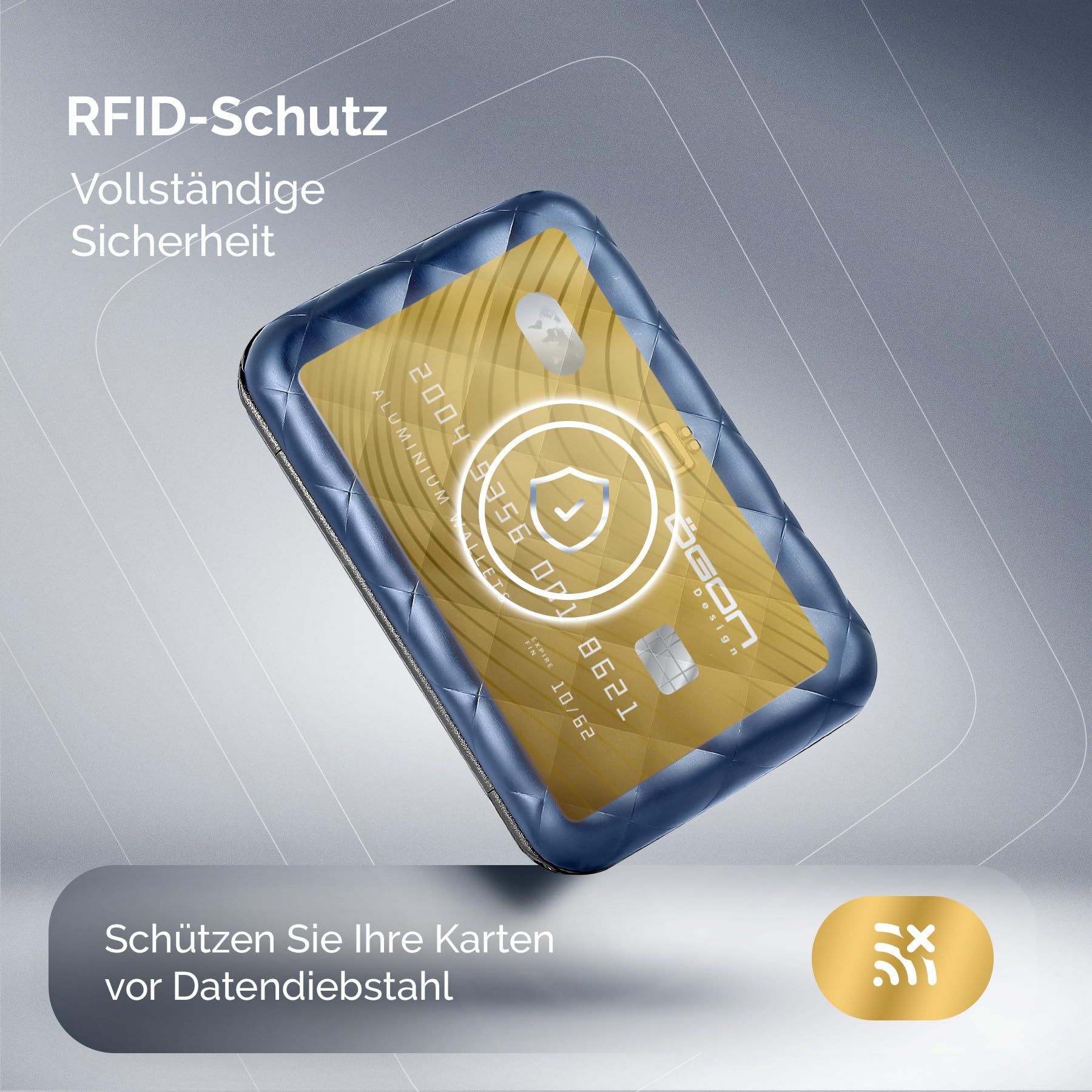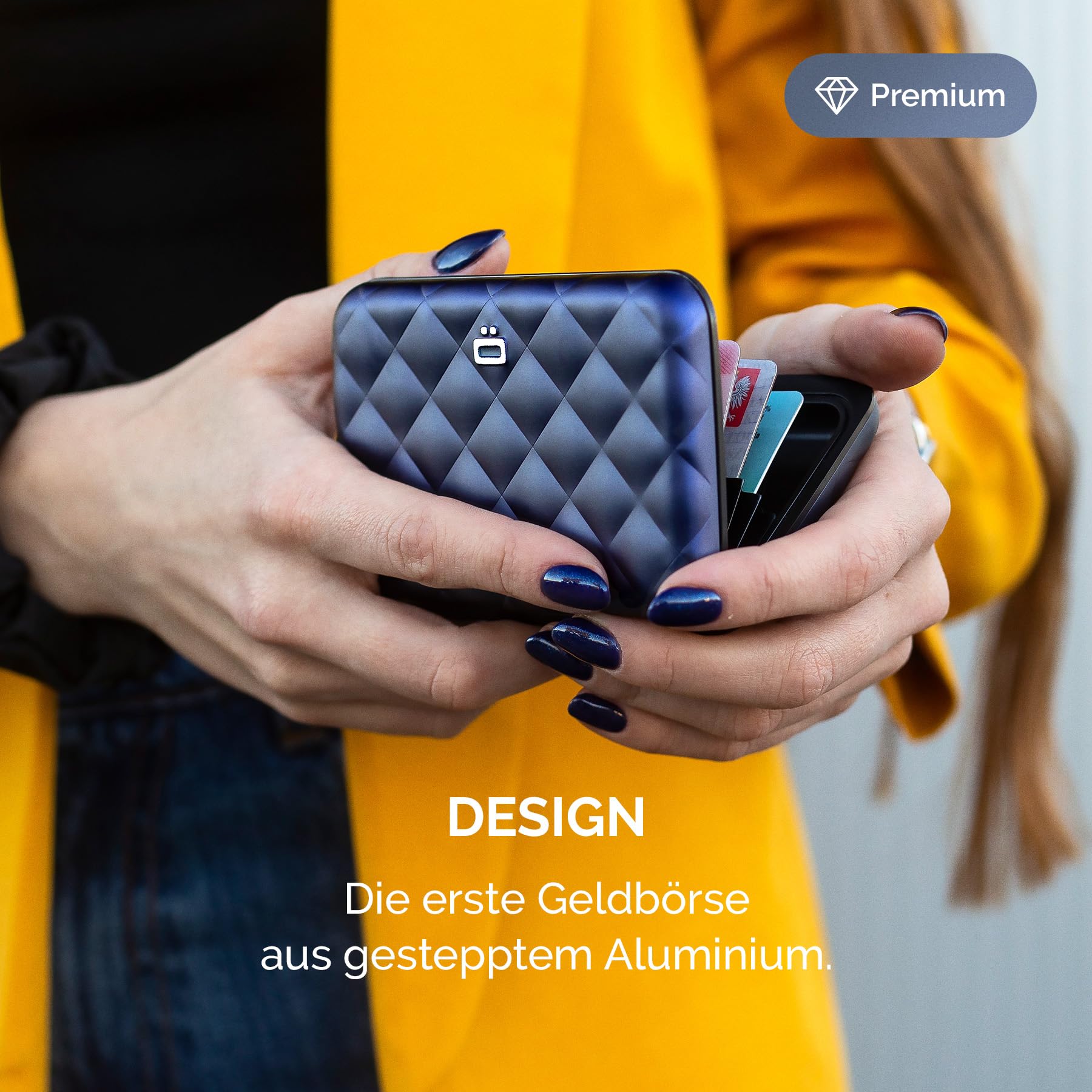 Ögon Smart Wallets – Aluminiowy portfel Quilted Button – Kobiety – Etui na karty blokujące RFID – Do 10 kart i banknotów (Ciemnoniebieski)