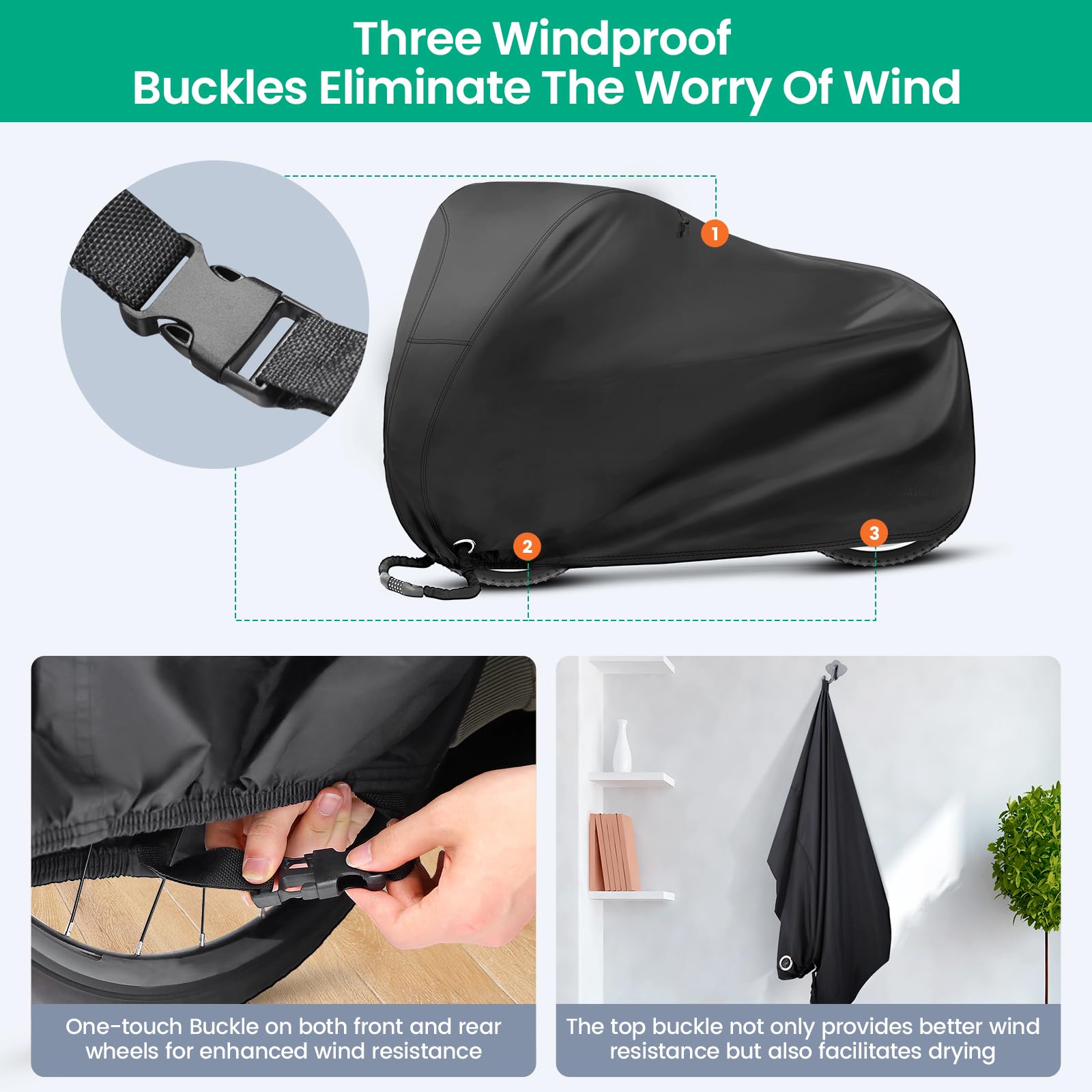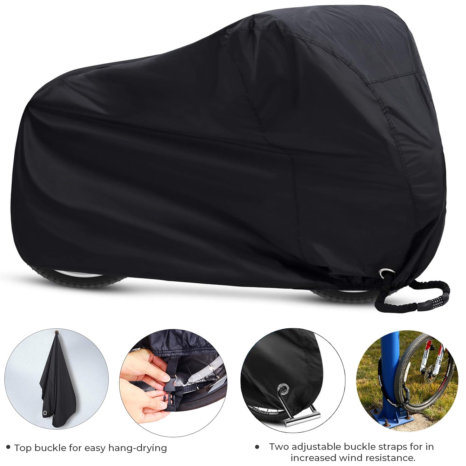 Ohuhu Garaż na rower to doskonałe rozwiązanie dla wszystkich miłośników jazdy na dwóch kółkach, którzy chcą chronić swój rower przed warunkami atmosferycznymi. Wykonany z wysokiej jakości tkaniny nylonowej 210T, ten wodoszczelny pokrowiec na rower zapewnia niezawodną ochronę przed deszczem, śniegiem, kurzem i promieniami UV.