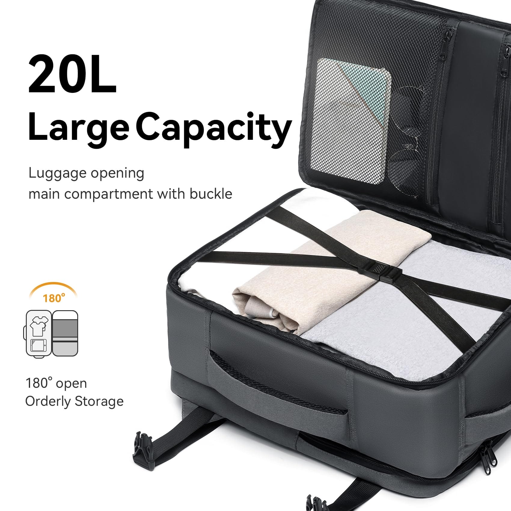 Plecak ma maksymalne spersonalizowane kieszenie, które pozwalają na łatwe sortowanie i organizację przedmiotów podróżnych. Komora główna otwiera się o 180°, co ułatwia pakowanie i podróżowanie. Wiele kompozycji i kieszeni pomaga w przechowywaniu iPada lub tabletu, dokumentów podróżnych, długopisu, biletów i innych drobiazgów.