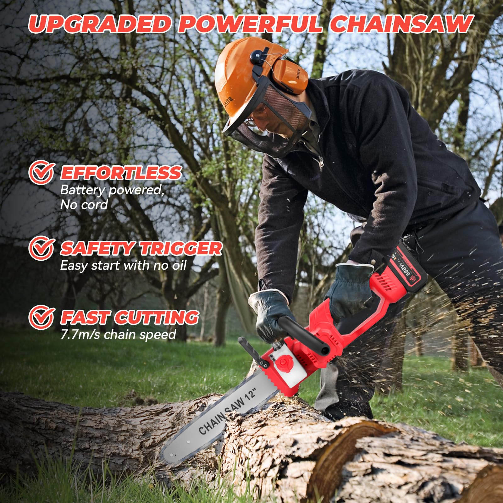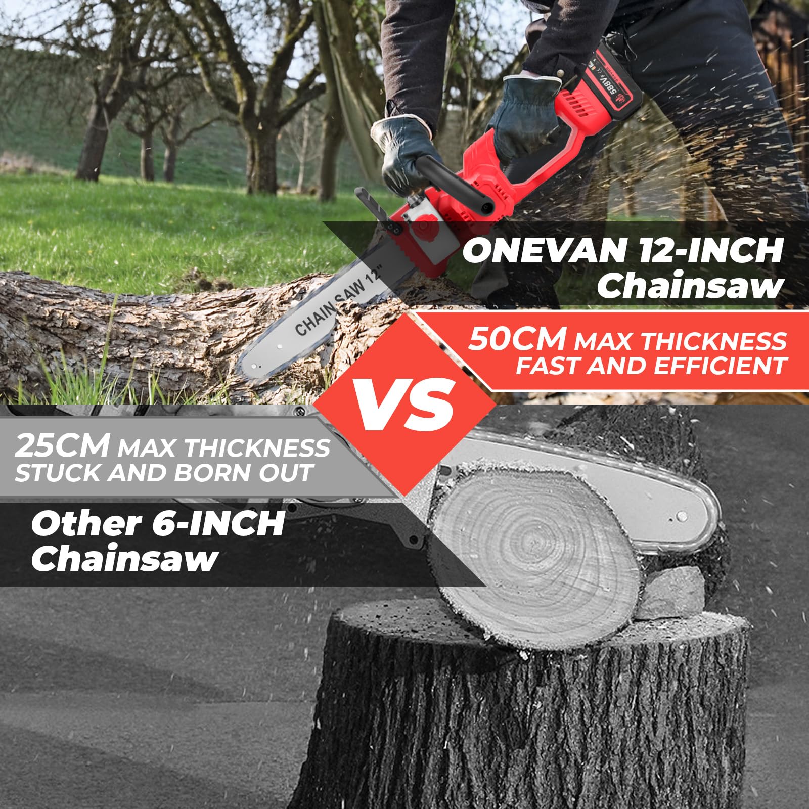ONEVAN Akumulatorowa piła łańcuchowa 8000 mAh 30 cm – elektryczna bezszczotkowa piła do gałęzi