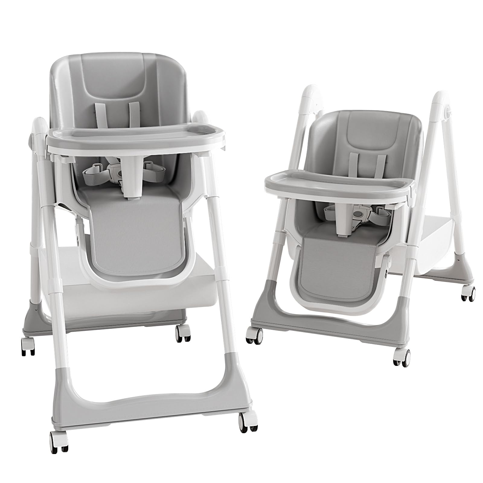 Krzesełko do karmienia 4 w 1, 4 pozycje pochylenia, 5 pozycji wysokości, Ewolucyjne składane wysokie krzesełko dziecięce