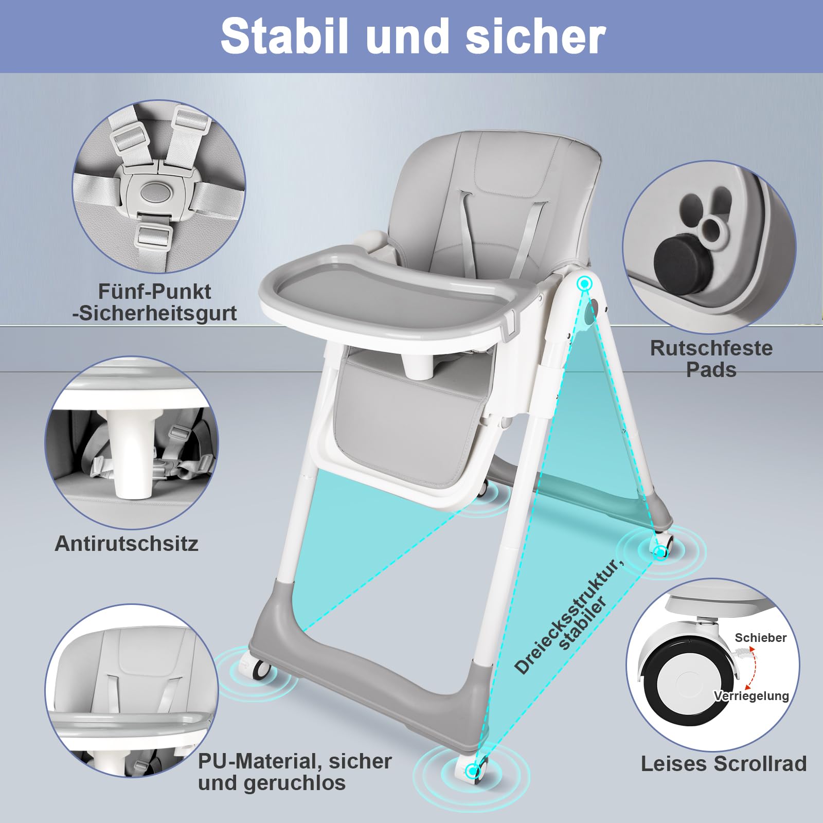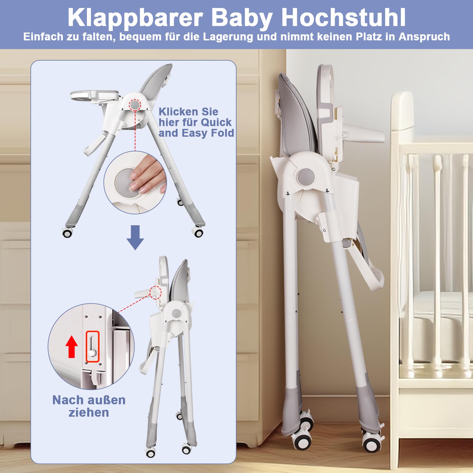 ✅ Łatwość czyszczenia i: Łatwość czyszczenia i składania: poduszka krzesełka do karmienia jest wykonana z PU, miękkiego, oddychającego materiału, który można zdjąć i łatwo wyczyścić. Tacę i krzesełko do karmienia można złożyć jednym naciśnięciem przycisku, oszczędzając miejsce w domu i ułatwiając zabranie ze sobą w podróż.