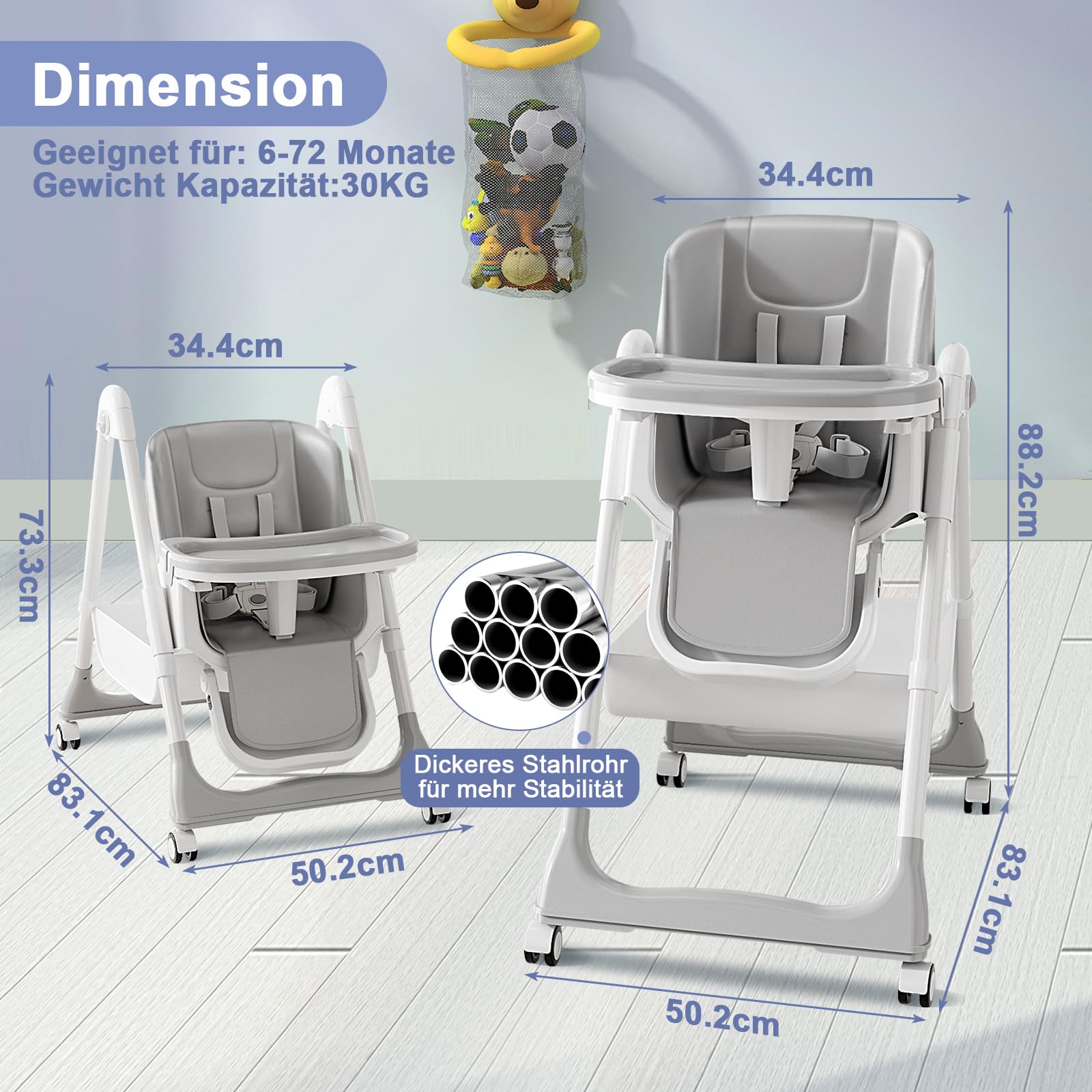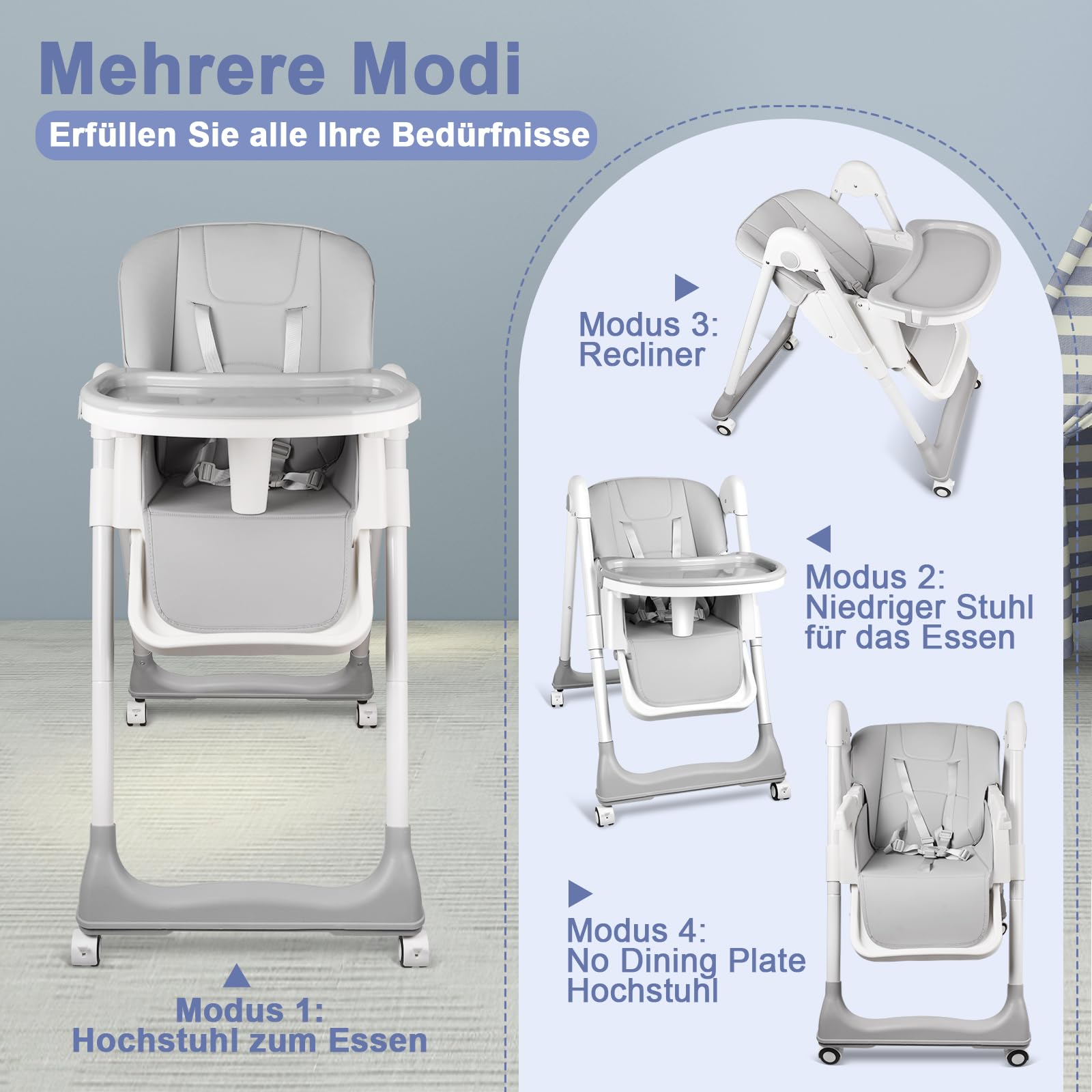 ✅ Krzesełko dla dziecka: Krzesełko dla dziecka 4 w 1: Krzesełko dla dziecka przekształca się w cztery tryby: wysokie krzesło, niskie krzesło, leżak i tryb bez tacy. Krzesła do jadalni są dostępne w pięciu wysokościach. Kieszeń do przechowywania pod krzesełkiem zapewnia łatwy dostęp do niezbędnych rzeczy dziecka.