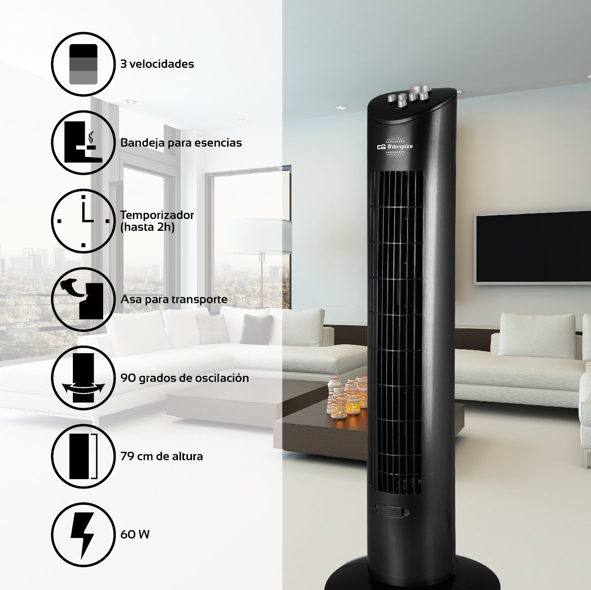 Wentylator kolumnowy Orbegozo TW 0800 z timerem 60W, obrotowy, czarny