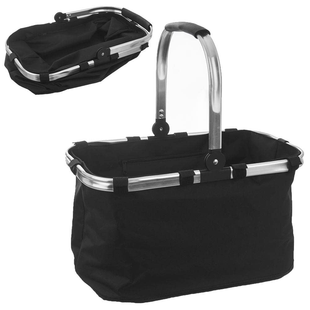 Kosz na zakupy kosz piknikowy grzyby składany czarny z to faltbarer Korb z wieloma zastosowaniami. Jest idealny do zakupów, pikników lub zbierania grzybów. Wykonany z wytrzymałego materiału w kolorze czarnym. Ramka i uchwyt do przenoszenia wykonane są z aluminium w kolorze srebrnym. Wygodny w użyciu dzięki antypoślizgowemu uchwytowi. Kosz posiada wewnętrzną kieszeń z zamkiem błyskawicznym. Materiał można zdjąć i wyprać. Jest lekki i poręczny, posiada stabilne, wzmocnione dno.