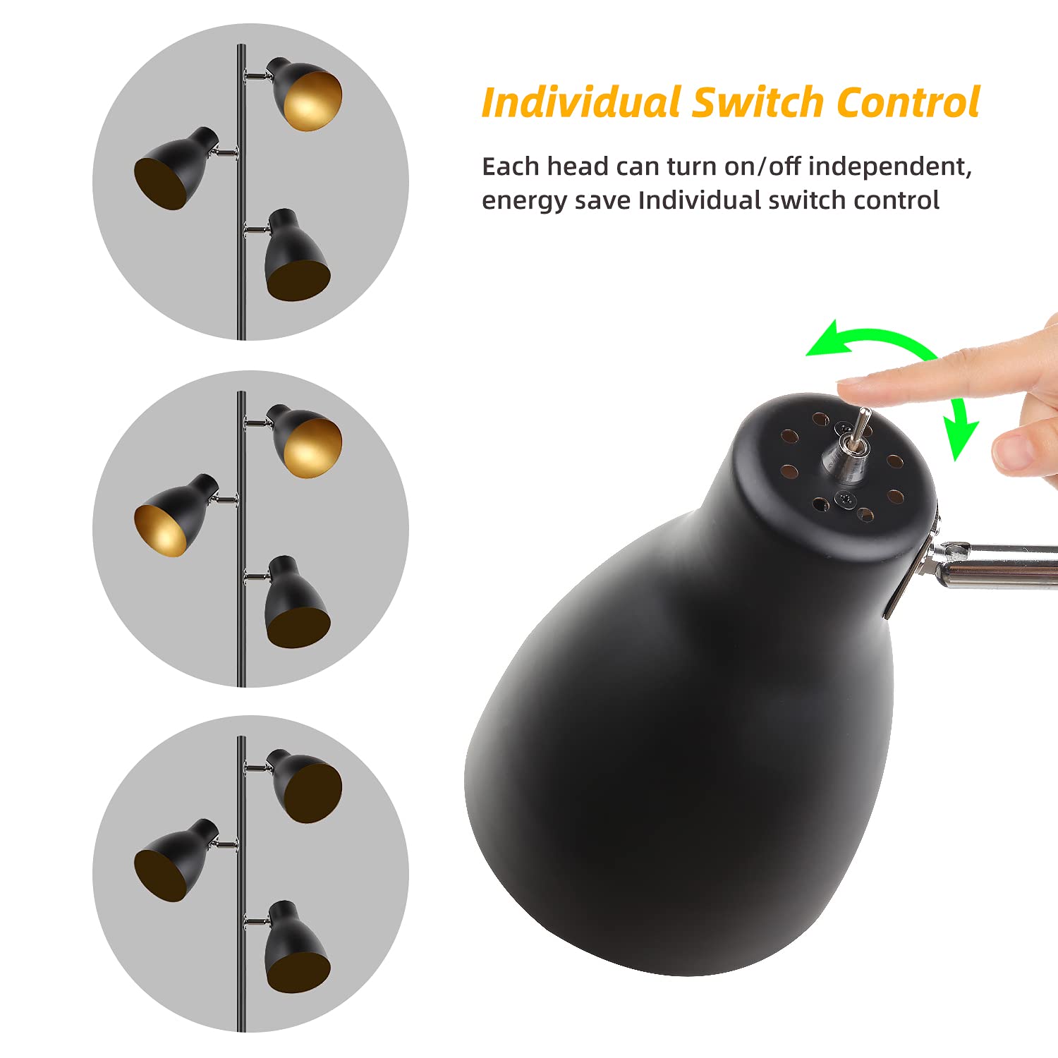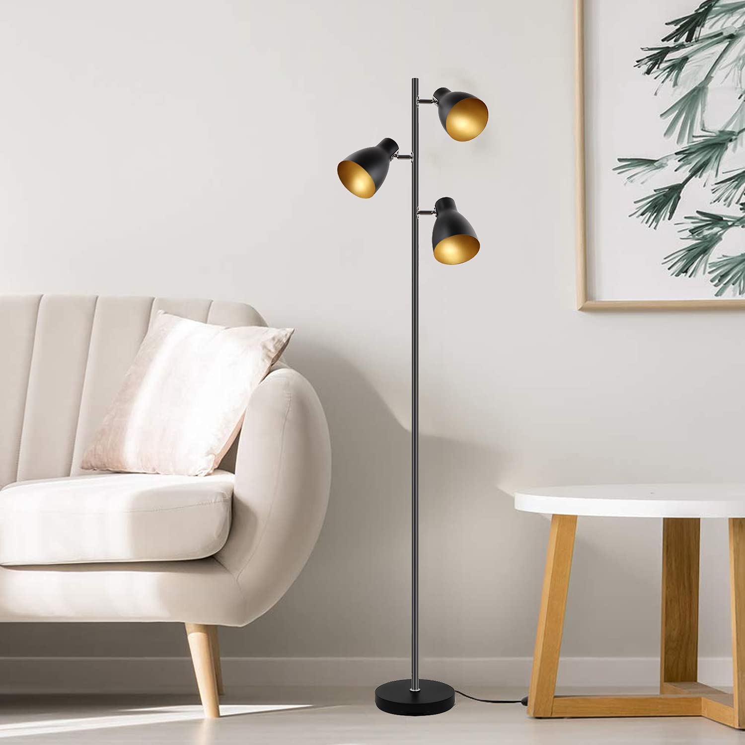 Regulacja kierunku 360°: Regulacja kierunku 360° – w porównaniu z tradycyjną lampą stojącą lampa podłogowa Osasy Tree jest w przemyśle ergonomiczna, 3 wielokierunkowe światła, które można ustawić kierunek 360°, można ją obracać oddzielnie, aby spełnić różne potrzeby. Rozwiązuje niedogodności spowodowane stałym kierunkiem gł