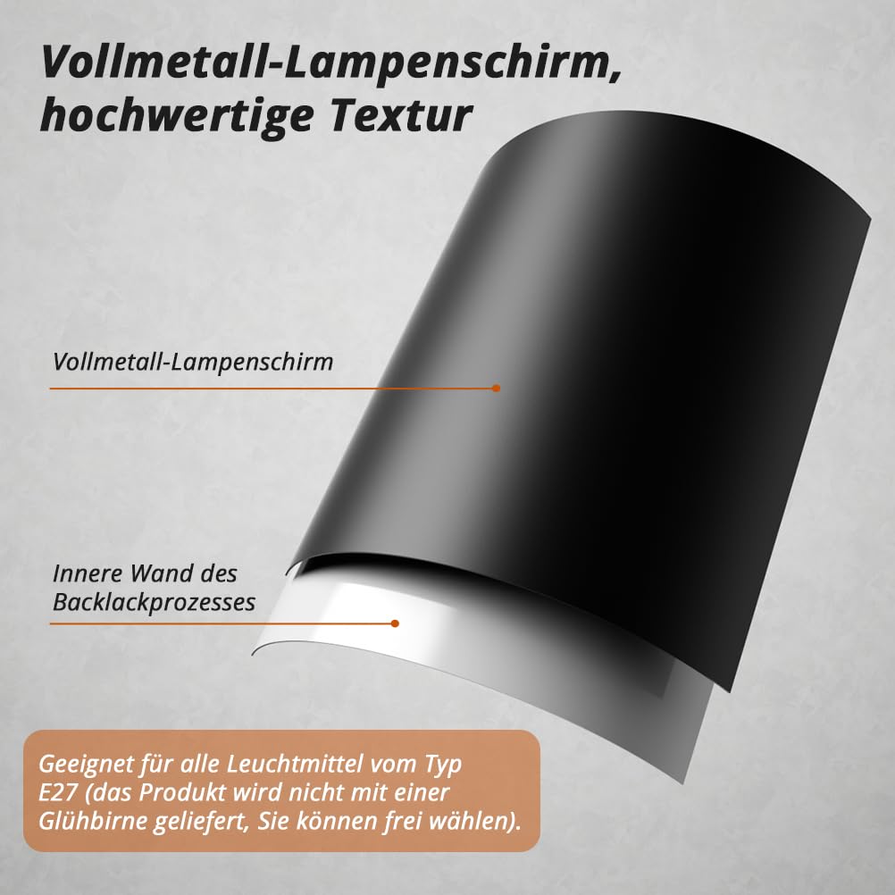 Abażur Regulowany w: Abażur Regulowany w Zakresie 360°: Oferujemy czarny abażur wykonany z wysokiej jakości żelaza. Regulacja 360°. Twórz indywidualne nastroje oświetleniowe, obracając głowicę lampy o 180°, aby świecić w górę lub w dół. Światło przez abażur staje się jaśniejsze i tworzy przytulną atmosferę w nocy. Kompl