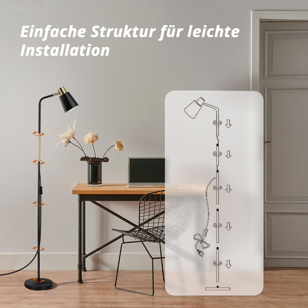 Łatwa Instalacja, Solidna: Łatwa Instalacja, Solidna i Bezpieczna: Do montażu lampy podłogowej nie są wymagane żadne narzędzia. Wystarczy dokręcić różne części, a obsługa jest prosta. Aby zapewnić bezproblemowe użytkowanie, lampa podłogowa jest wyposażona w przełącznik i kabel o długości 2 m. Podstawa solidnej lampy podłogowe