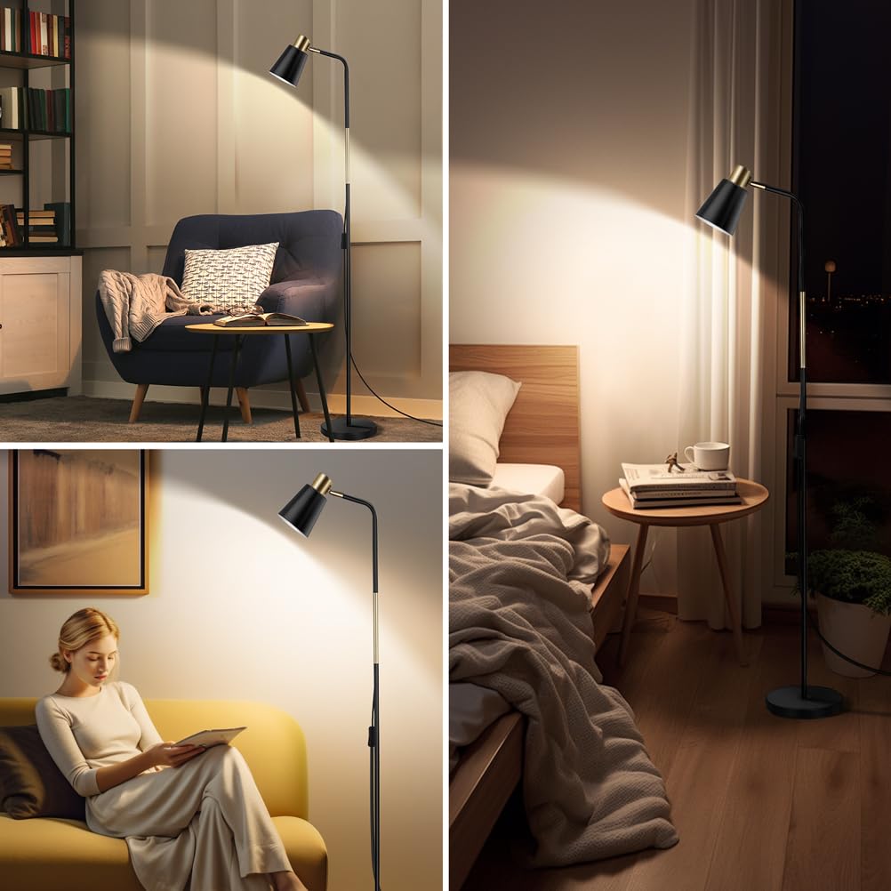 OUSFOT Lampa do czytania i salonu, wysokość 146 cm, 230 V, E27, maks. 40 W, retro, czarna