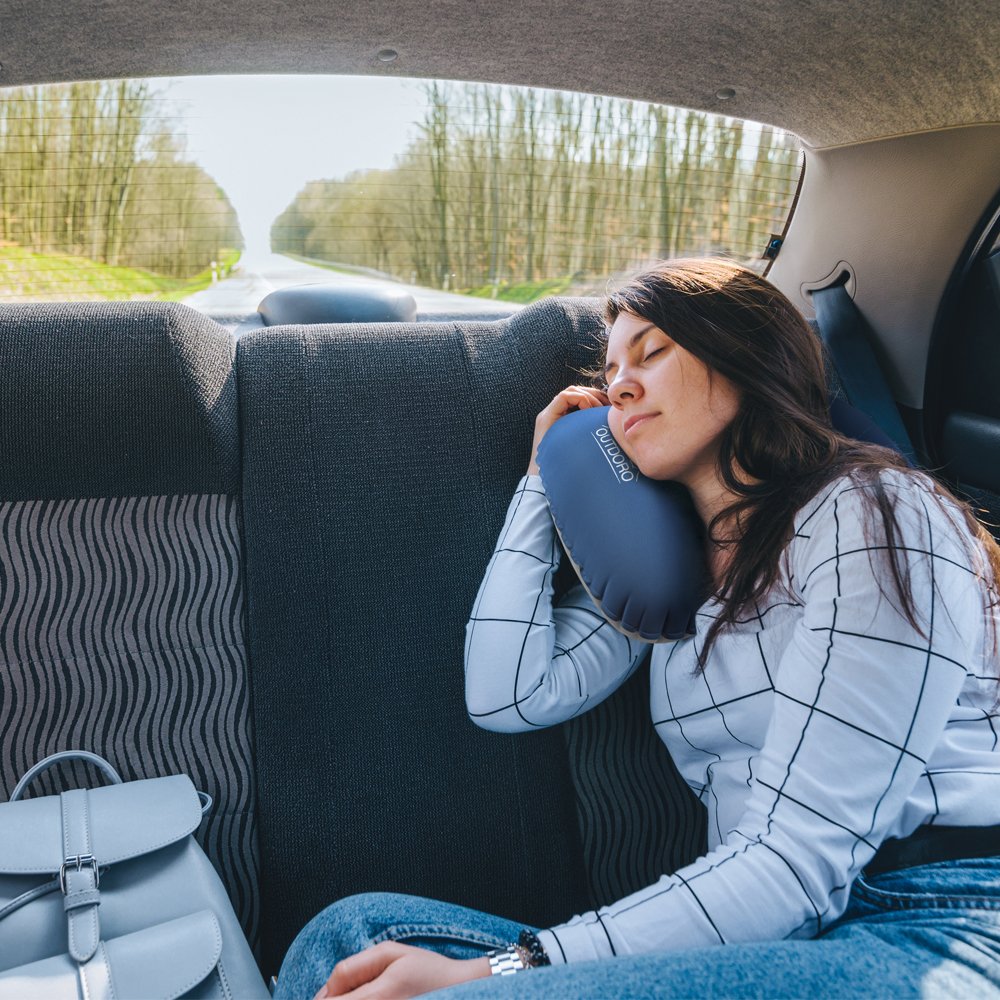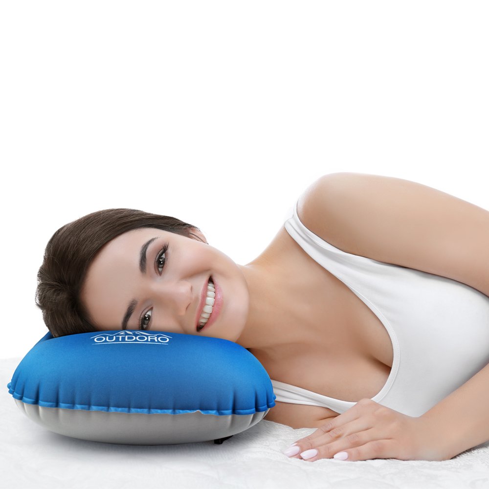 Outdoro Nadmuchiwana poduszka – ultra lekka poduszka pod głowę na plażę, podróż, kemping i aktywności na świeżym powietrzu, niebieska, 1 sztuka (1 opakowanie).