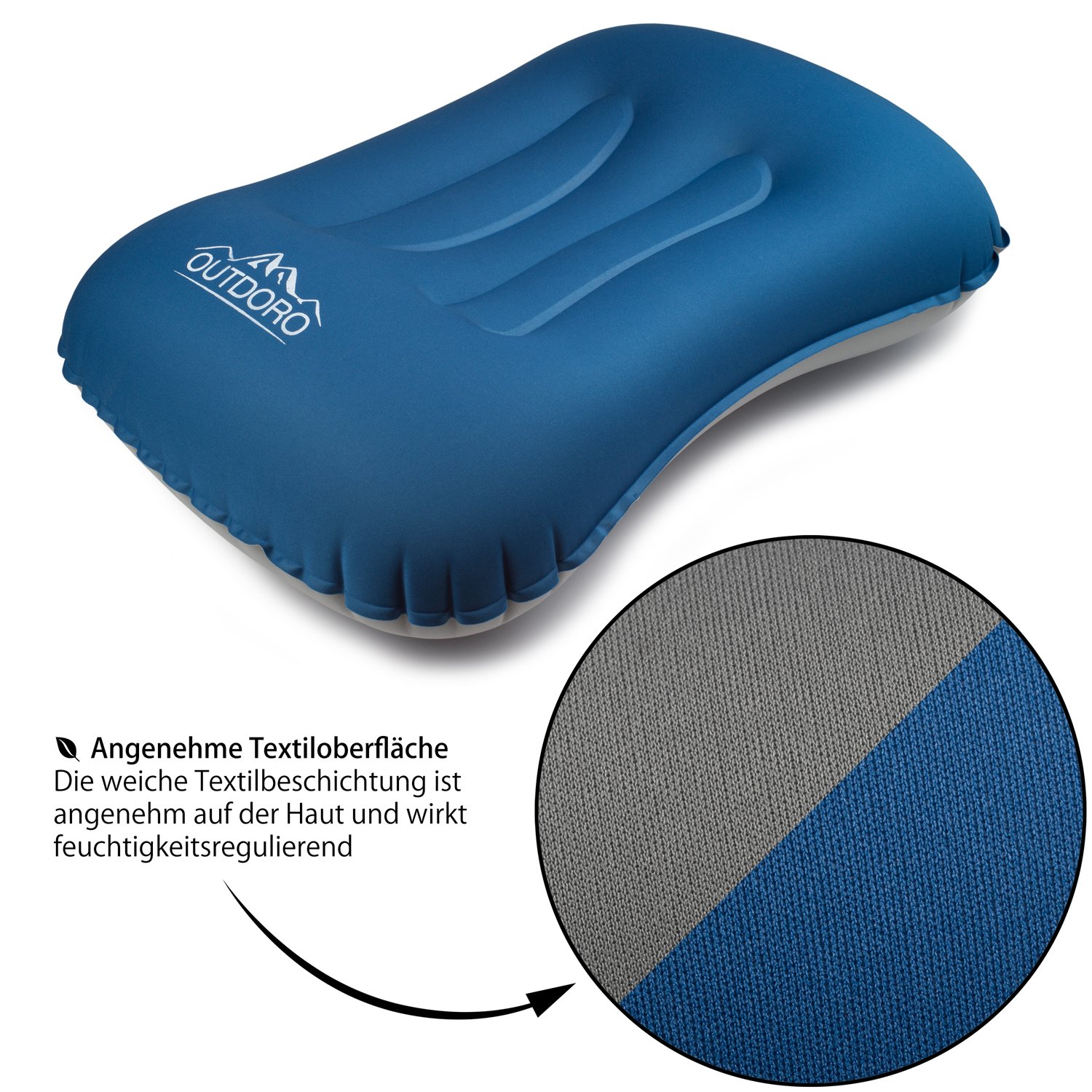 Outdoro Nadmuchiwana poduszka – ultra lekka poduszka pod głowę na plażę podróż kemping do aktywności na świeżym powietrzu niebieski 1 Stück (1er Pack)