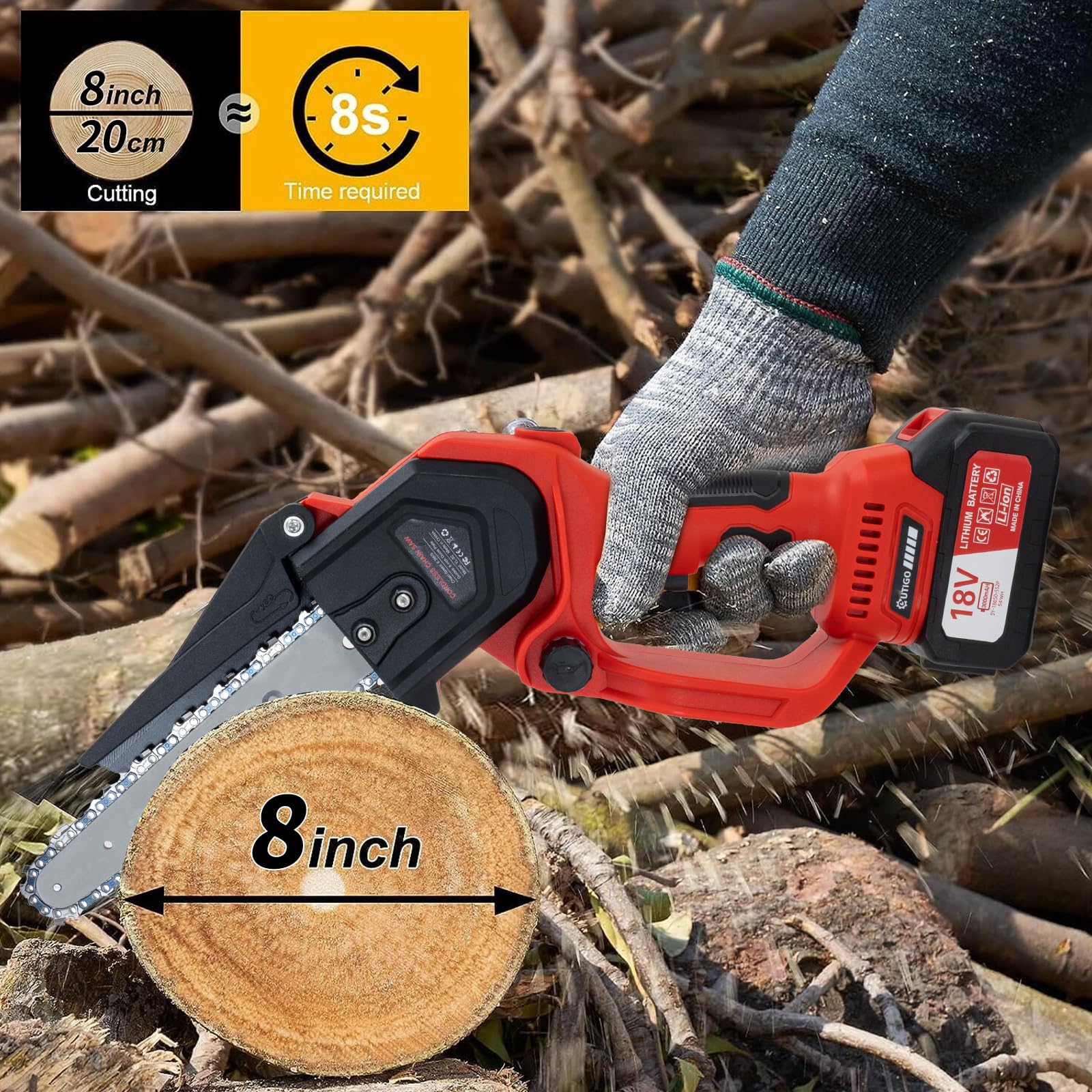 OUTIGO Mini akumulatorowa piła łańcuchowa to doskonałe narzędzie dla wszystkich miłośników ogrodnictwa i majsterkowania. Ta 8-calowa piła łańcuchowa jest wyposażona w akumulator o pojemności 6000 mAh, co pozwala na długotrwałe użytkowanie bez konieczności częstego ładowania.