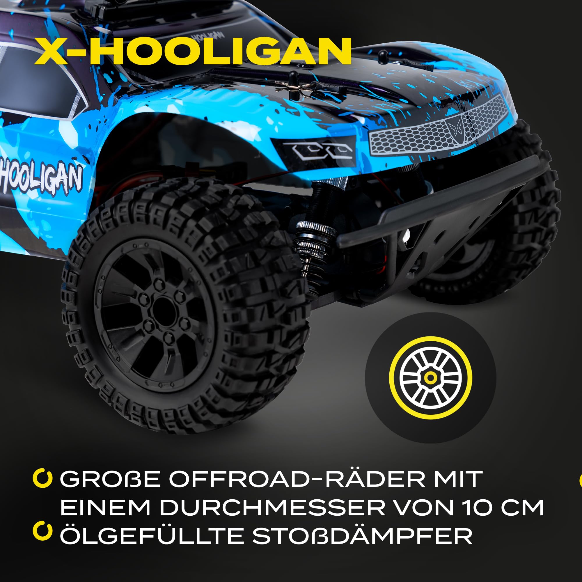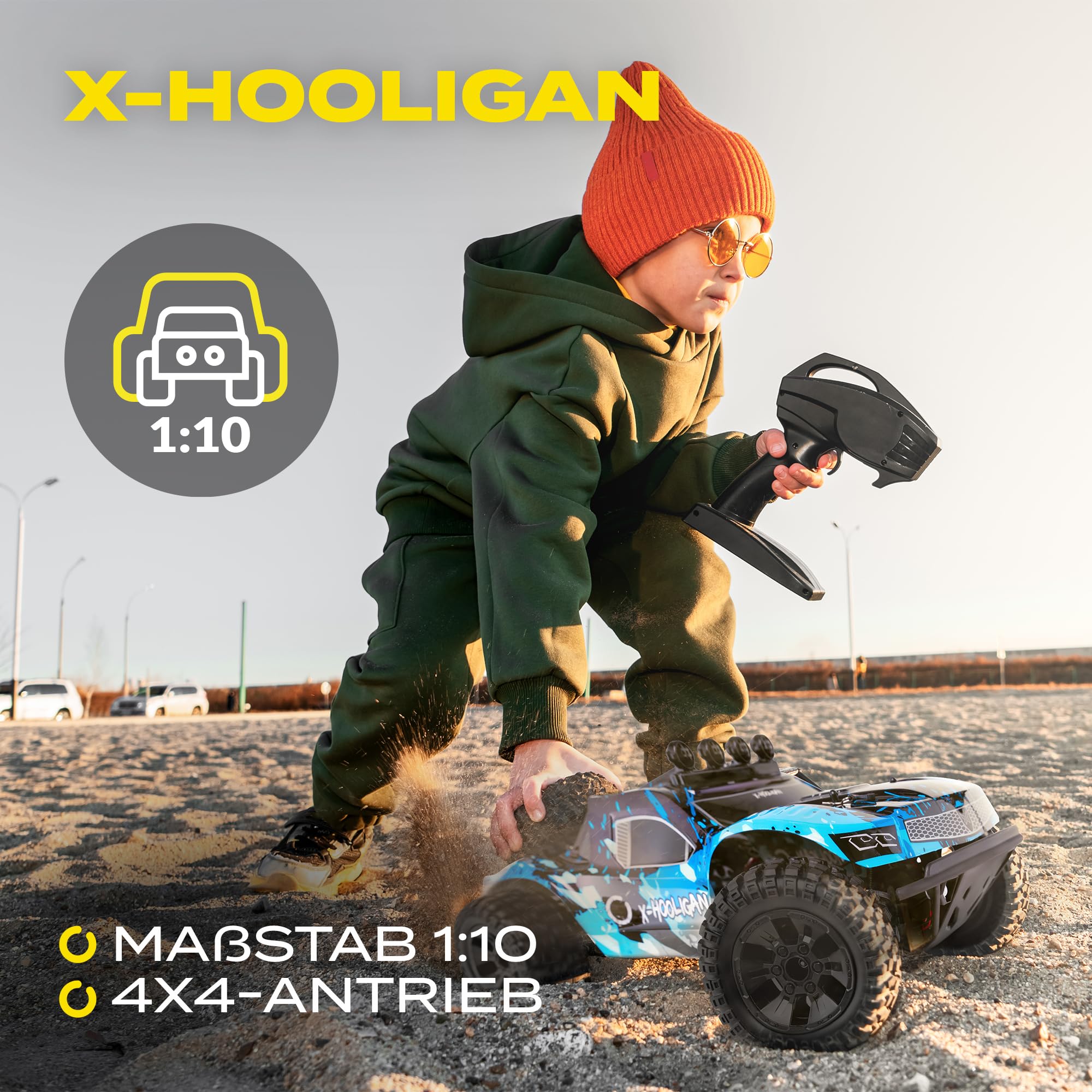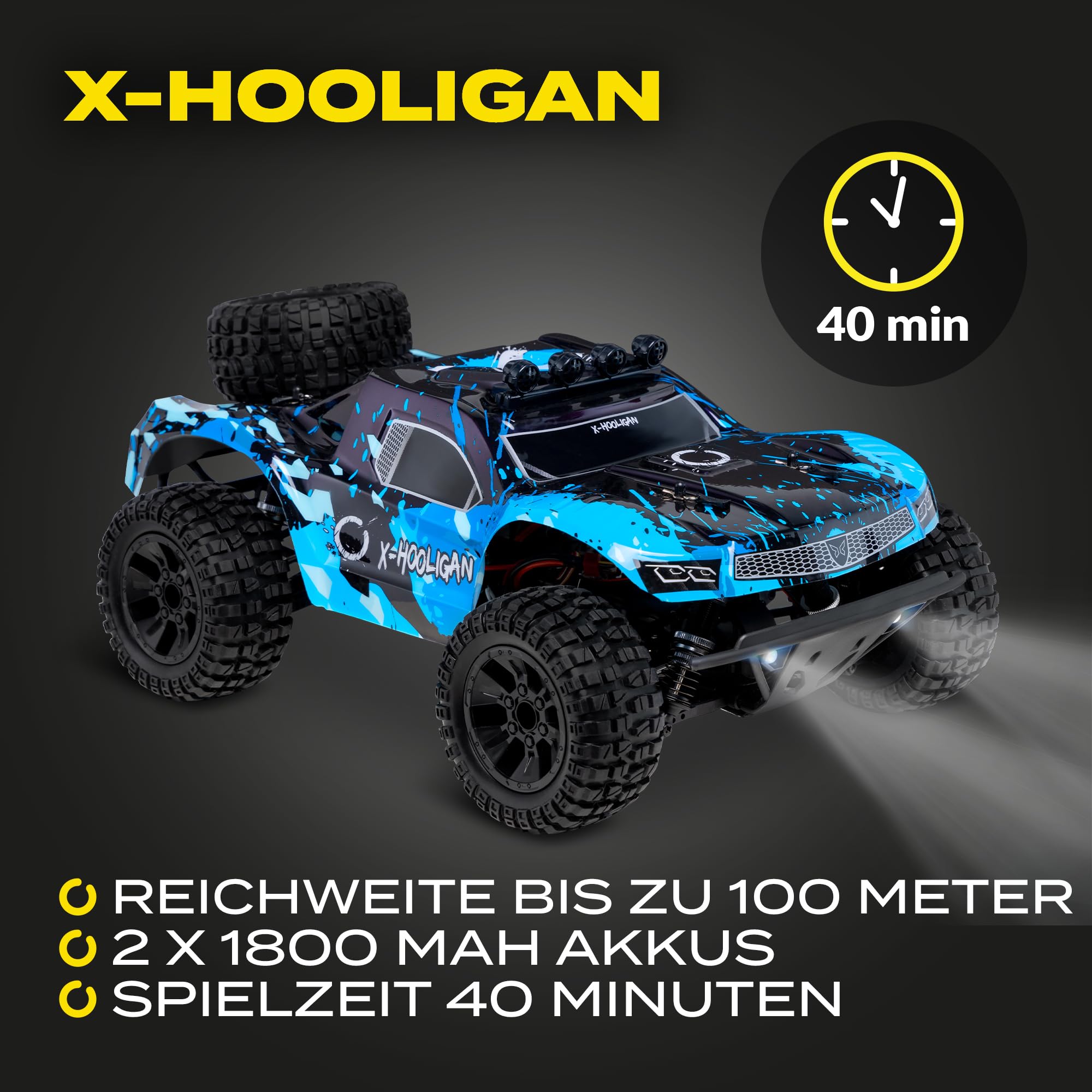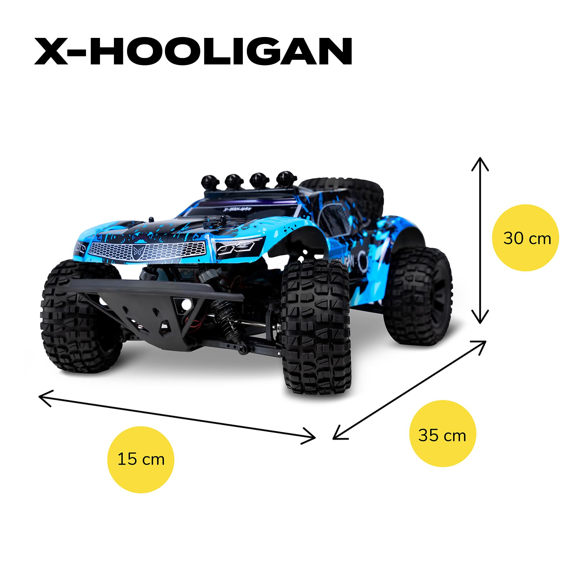 Overmax X-Hooligan duży, szybki, zdalnie sterowany samochód, skala 1:10, prędkość 35 km/h, zasięg 100 m, napęd 4 x 40 minut, oświetlenie LED