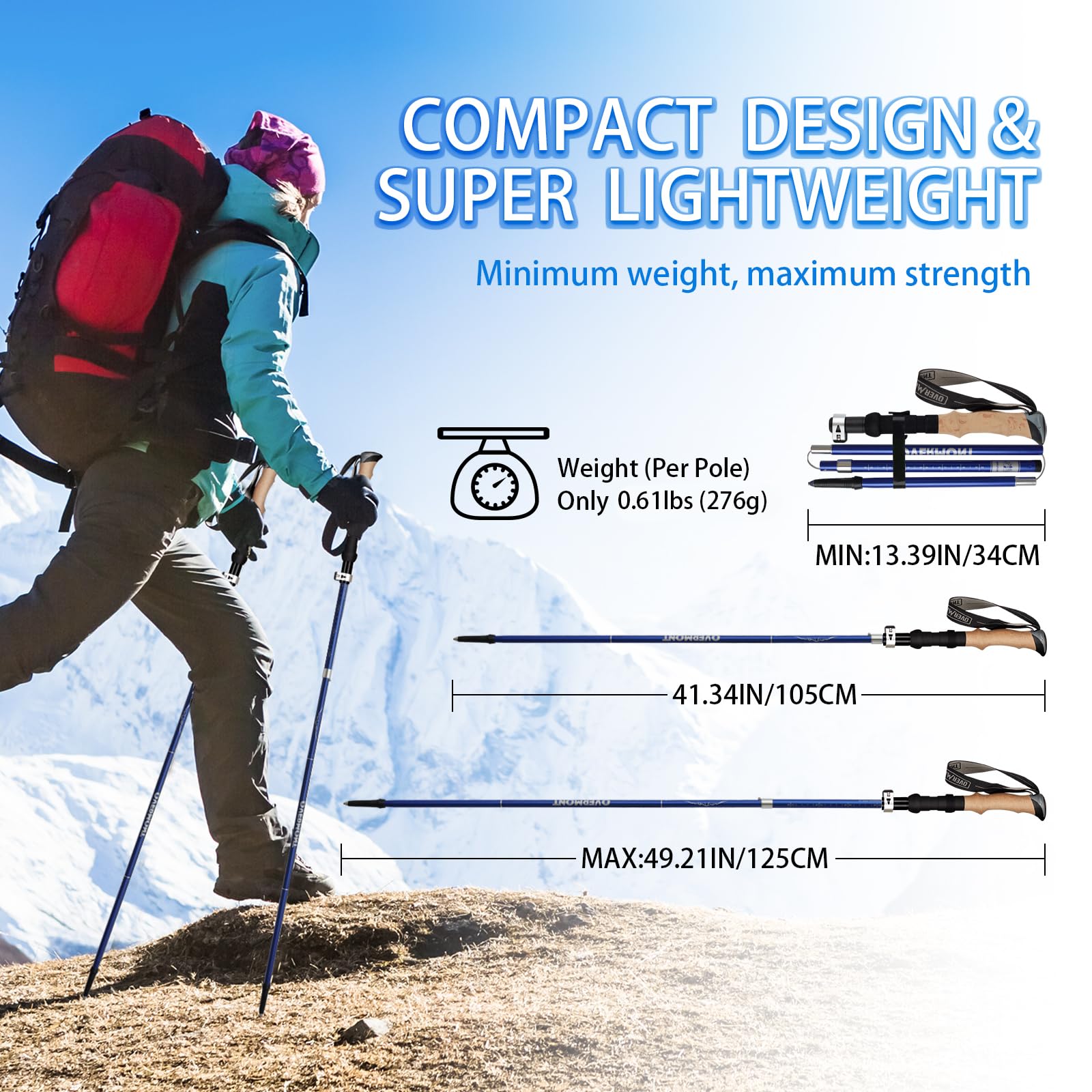 ✅ Ultralekki 0,26 kg: Ultralekki 0,26 kg i stop aluminium klasy lotniczej 7075 – kijki trekkingowe Overmont wykonane z aluminium klasy lotniczej 7075, które lepiej wytrzymuje nacisk i uderzenia niż włókno węglowe. Aluminiowe wygina się bez zaczepiania, które najlepiej nadają się do długodystansowych trekkingu i wycieczek