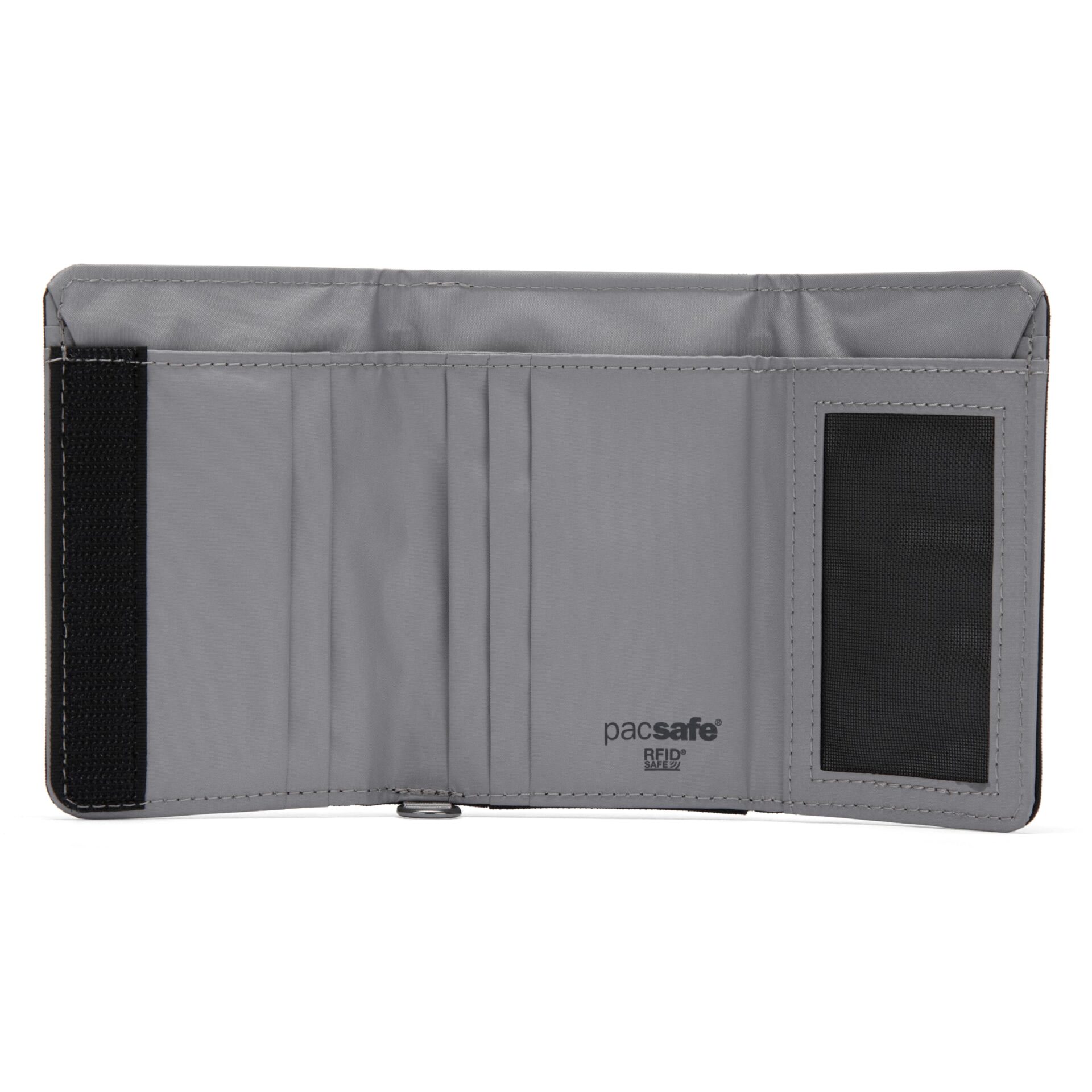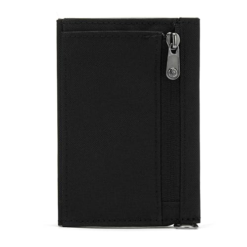 Pacsafe Męski składany portfel Rfidsafe blokujący RFID, kruczoczarny, jeden rozmiar, potrójnie składany portfel blokujący RFID Rfidsafe