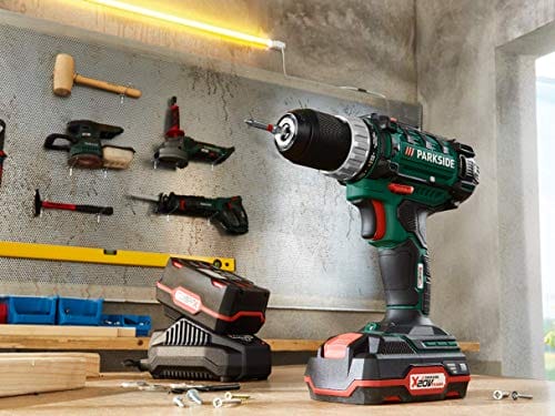 • Wiertarko-wkrętarka akumulatorowa ze zintegrowaną lampą roboczą LED, mocny silnik z 2-biegową przekładnią, szybkozaciskowy uchwyt wiertarski z metalu z blokadą promieniową, włącznik/wyłącznik z bezstopniową regulacją prędkości obrotowej i Quickstop, zintegrowana lampa robocza LED, obustronna z magnetycznym uchwytem do bitów, praktyczny klips do paska, ergonomiczny uchwyt Softgrip, kompatybilny ze wszystkimi akumulatorami serii „PARKSIDE X 20 V Team”, dostawa bez akumulatora i ładowarki