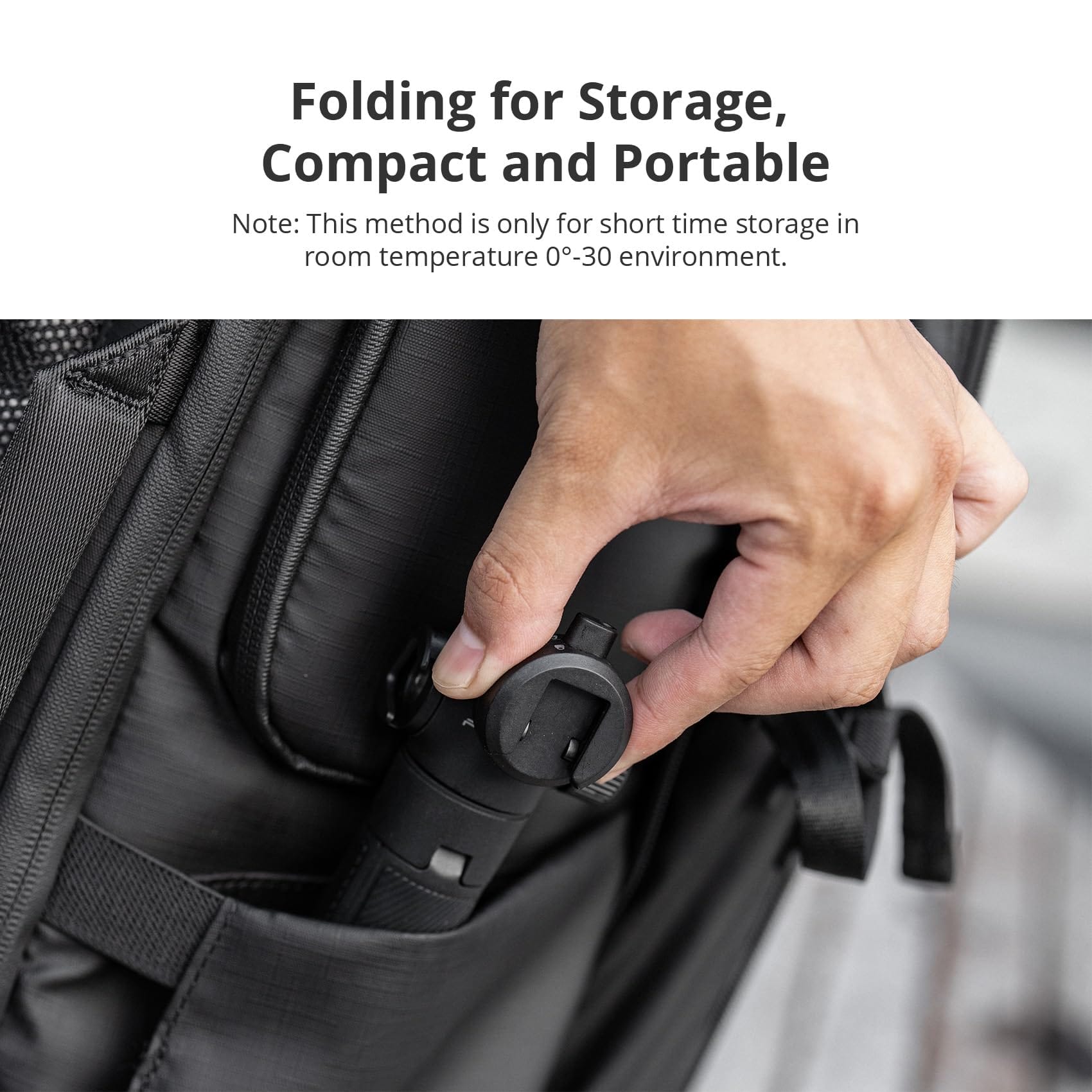 Statyw posiada również magnetyczną podstawę nóg, która może być wykorzystana jako kijek do selfie lub rozłożona, aby uzyskać większą różnorodność kreatywnych kątów nagrywania. Nogi można szybko złożyć, tworząc wygodną rękojeść.