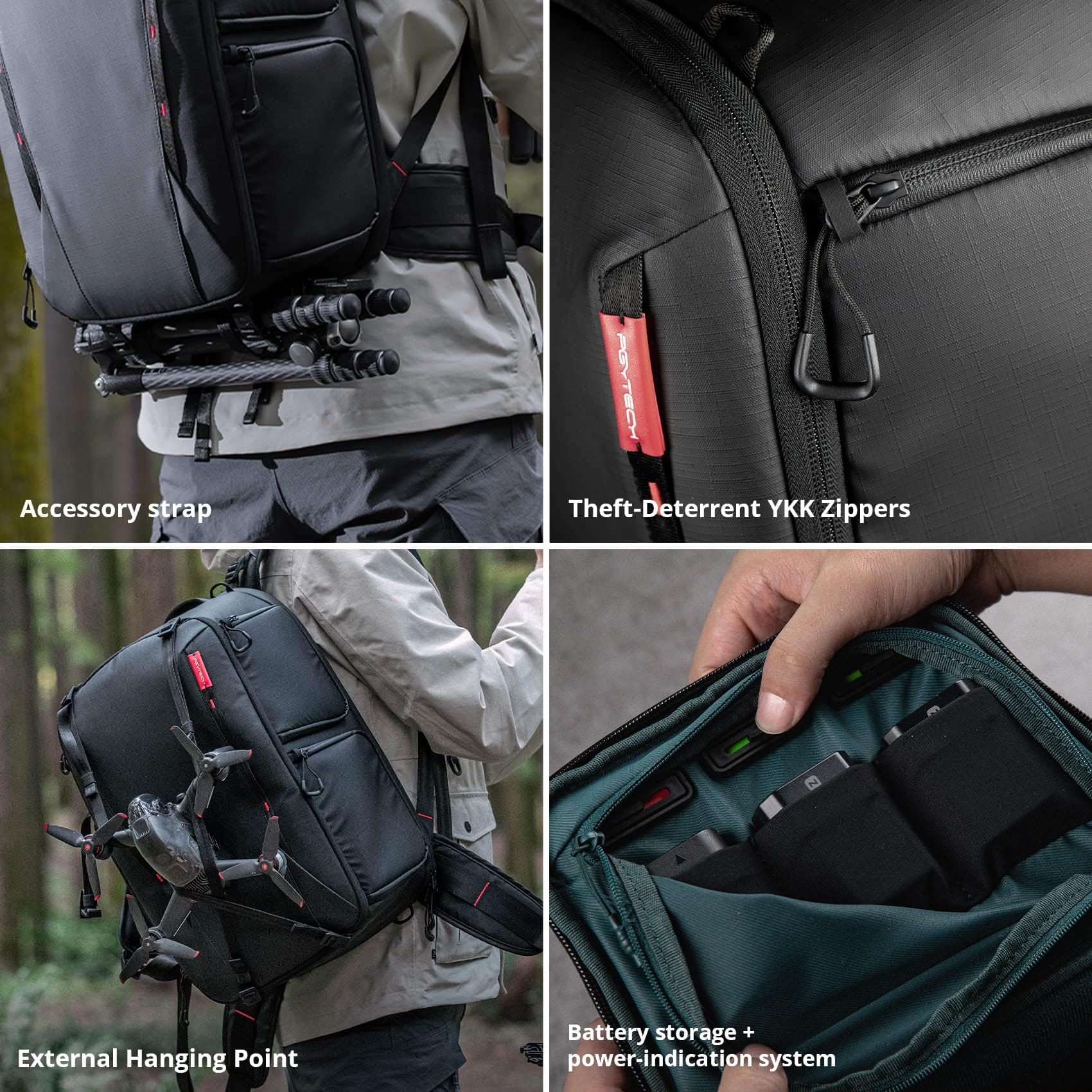 Ulepszone wewnętrzne przegrody są grubsze i bardziej elastyczne, co pozwala na uporządkowane przechowywanie sprzętu fotograficznego i innych ważnych przedmiotów. Dostęp z góry i z prawej strony umożliwia łatwe sięgnięcie po aparat. Dodatkowo, plecak posiada wiele udogodnień, takich jak system oznaczania baterii rodzinnych, ukryta kieszeń na Airtag, zamki YKK i wiele innych.