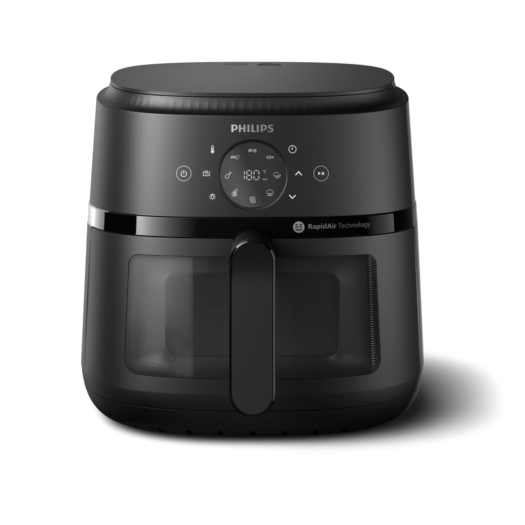 Philips Frytkownica Beztłuszczowa z Serii 2000, Pojemność 6,2L – Moc 1700W, Okienko Gotowania, Technologia RapidAir, Ekran Dotykowy, 13 Funkcji Gotowania, Do 90% Mniej Tłuszczu, Czarna (NA230/00)