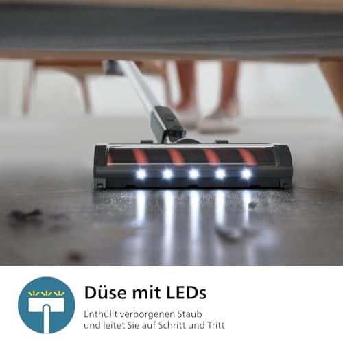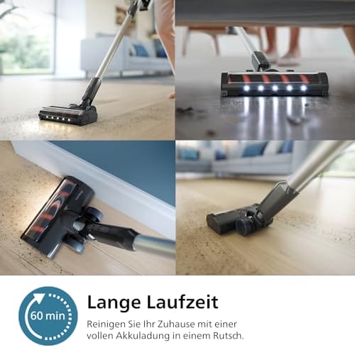 Odkurzacz bezprzewodowy Philips Serii 3000 posiada również abnehmbarer Handstaubsauger, czyli funkcję, która umożliwia jego przekształcenie w przenośny odkurzacz ręczny. Dzięki temu możesz łatwo dotrzeć do trudno dostępnych miejsc, takich jak schody, meble czy samochód. Odkurzacz jest wyposażony w akumulator litowo-jonowy o pojemności 25,2 V, który zapewnia długą żywotność baterii i krótki czas ładowania.