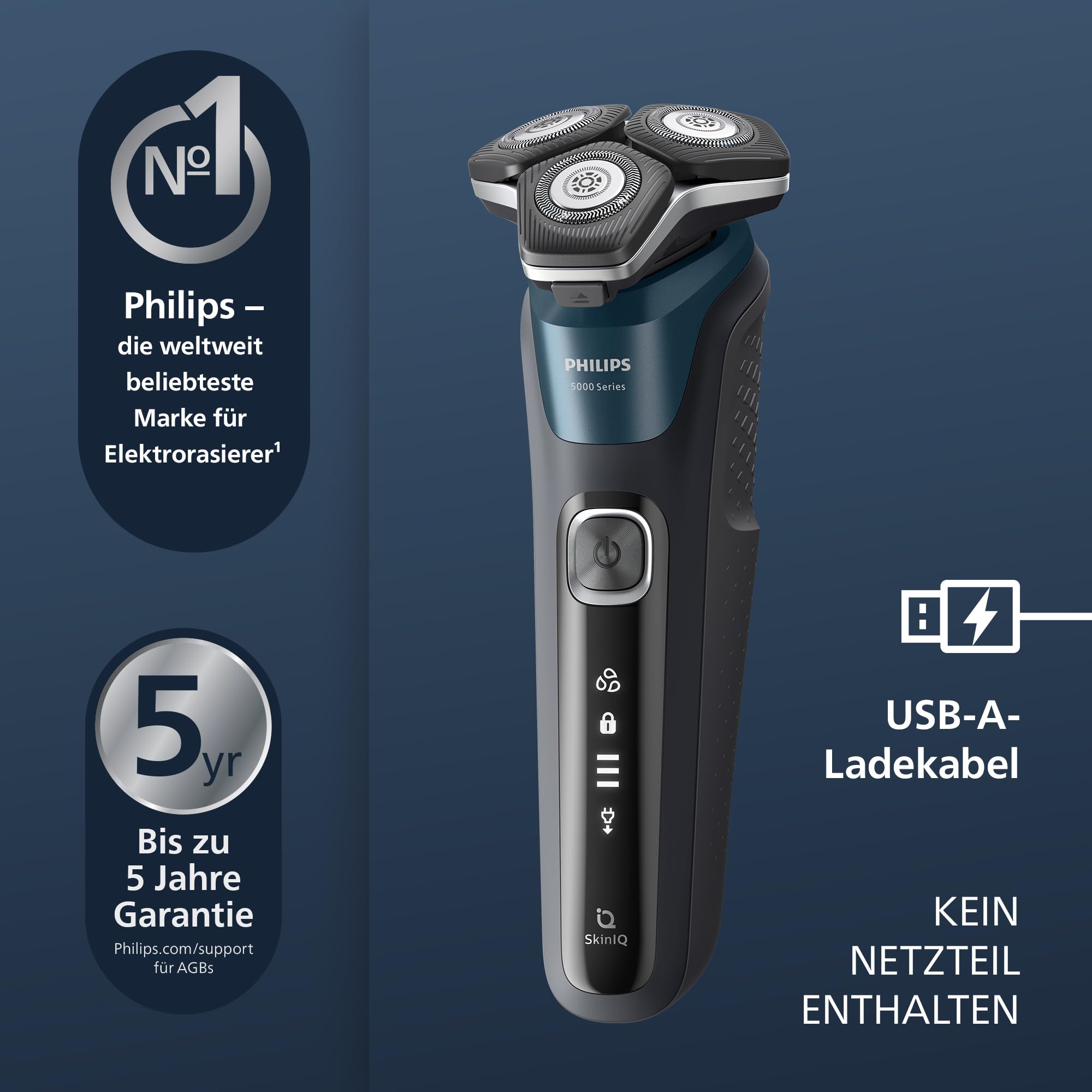 Philips Golarka Serii 5000, Elektryczna, na Mokro i na Sucho, z Technologią SkinIQ, Wysuwany Trymer, Etui Podróżne, Saszetka Quick Clean Pod, Elektryczny Niebieski, Model S5889/50