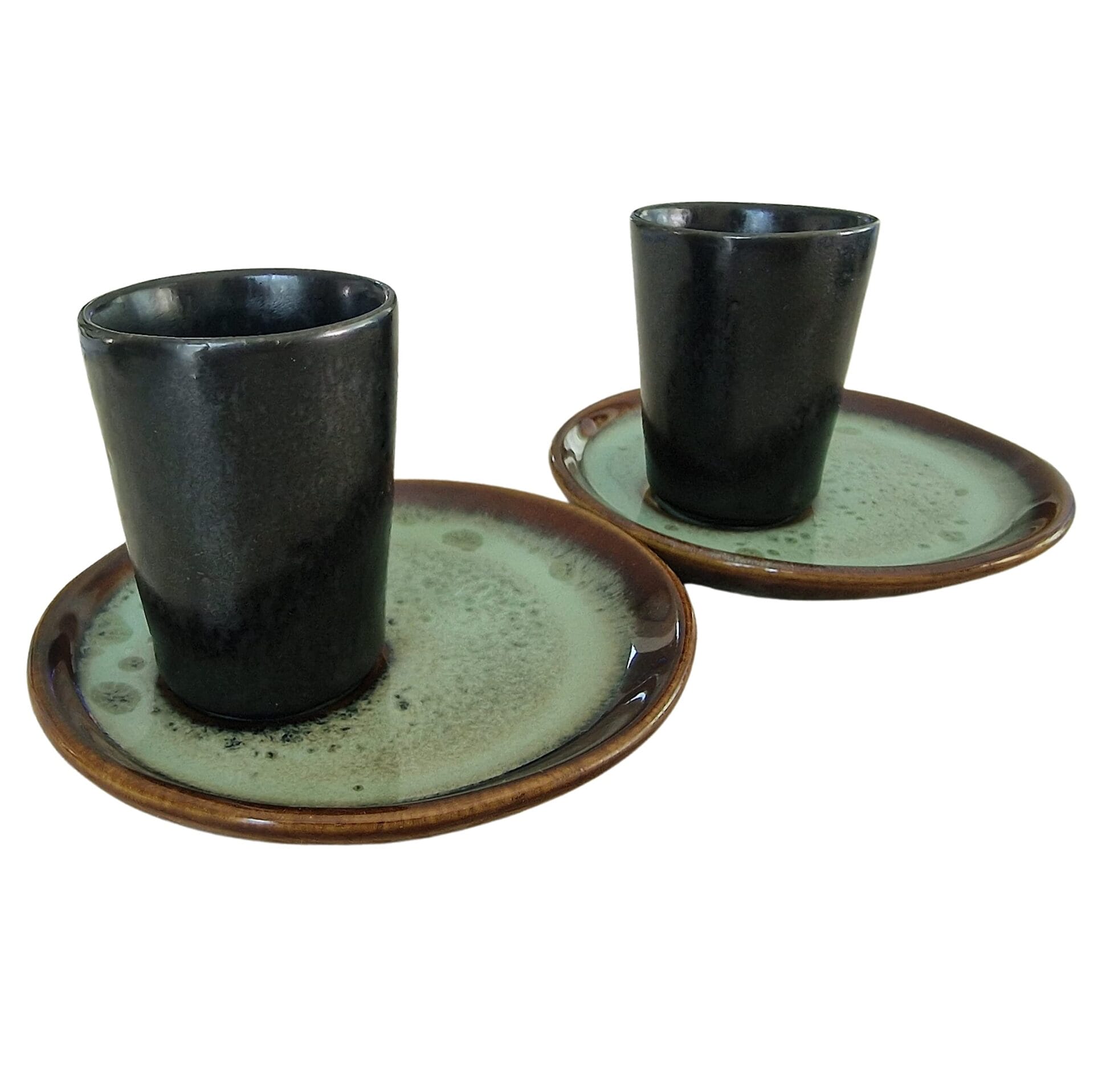 PintoCer – Zestaw filiżanek do kawy Espresso z czarnej kamionki bez uchwytu (Czarny/Zielony 2)