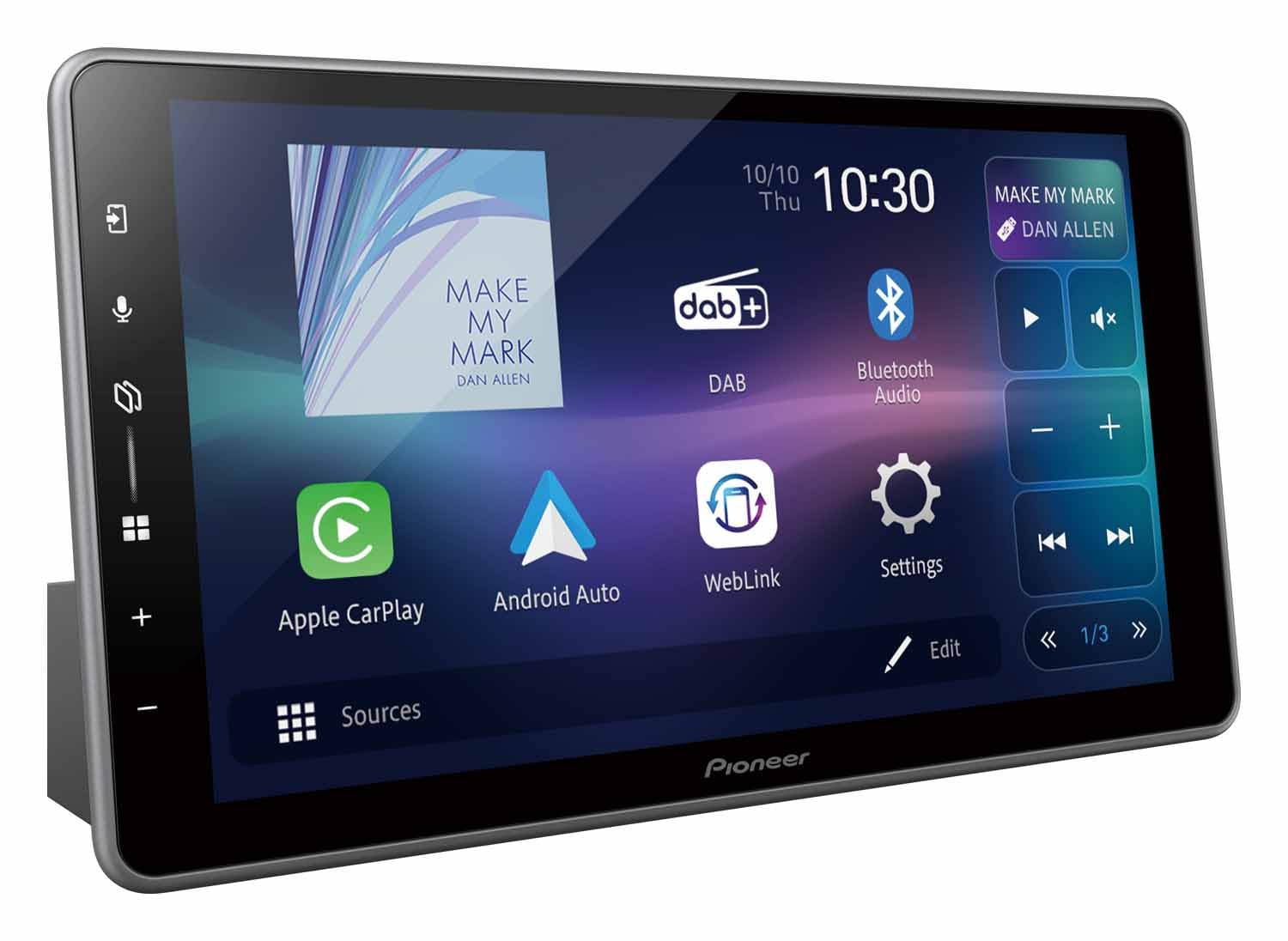 Pioneer SPH-DA97DAB-UNI – centrum multimedialne 1DIN, pojemnościowy panel dotykowy 9,0″, z Wi-Fi, Bluetooth, Apple CarPlay, Android Auto i DAB+, Single