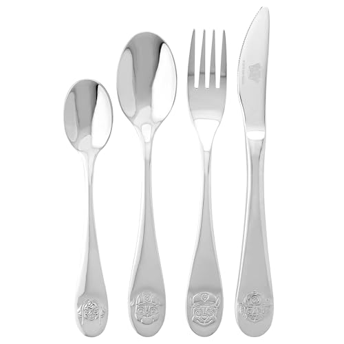 4-częściowy zestaw sztućców: 4-częściowy zestaw sztućców z kunsztownym tłoczeniem dla chłopców i dziewczynek od 3 lat